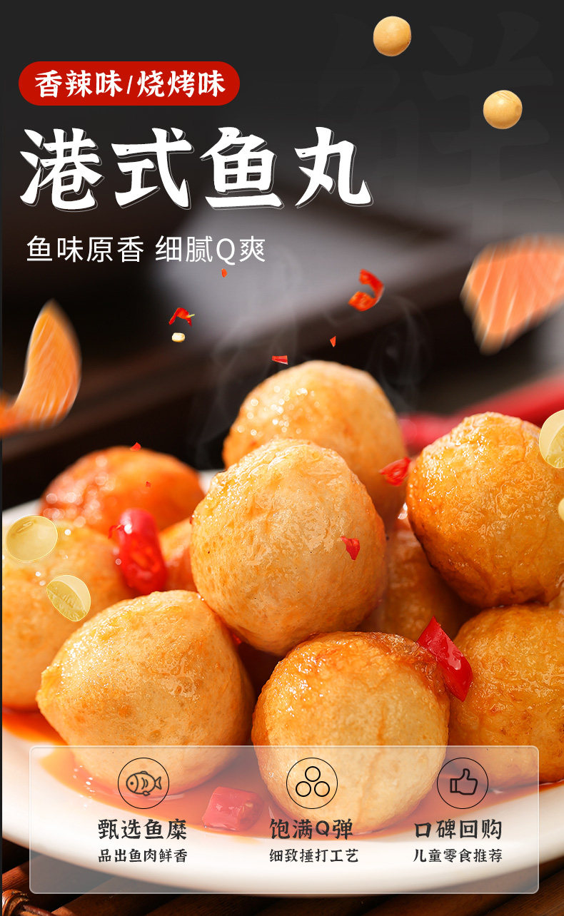 Рыбные шарики со вкусом Q, готовые к употреблению, острое барбекю, рыбные шарики в гонконгском стиле, морепродукты, повседневные закуски 𫔮Закуски, чтобы утолить тягу к фаст-фуду в общежитии