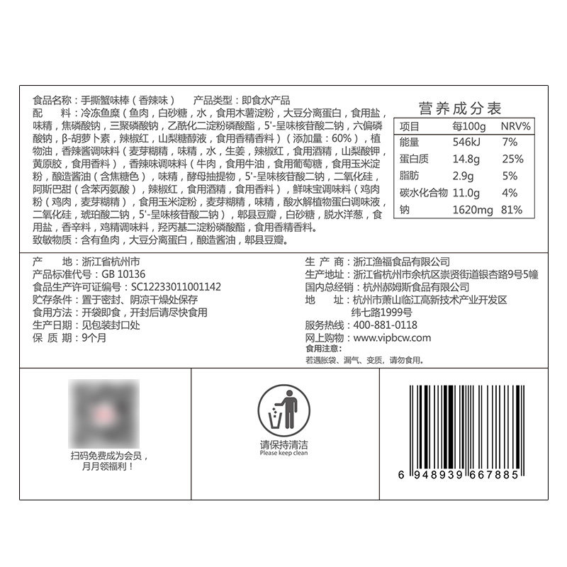 [Bai Caosi Hand -To -Crab Stick 120gx2 мешок] краб -ива мясной палочка морепродукты магазин магазин закуски с закусками красные закуски
