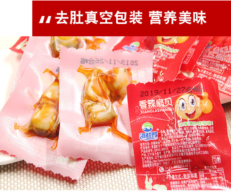 Мясо с морепродуктами острая гребешка Мясо сразу открывает сумку, небольшая упаковка пряная раковина, морепродукты, приготовленная на пищу, сеть красные закуски с красно -абалоном