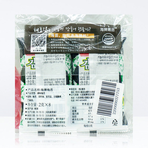 [Импортированные] корейские водоросли бренда Hai, оригинальные морепродукты, 16 г/пакет, закуски, закуски