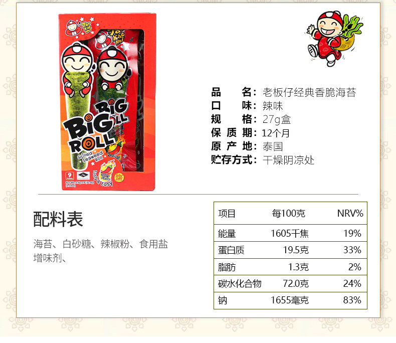 Таиланд импортированные морские водоросли босс Spicy Laver Roll 27G сеть случайной доставки красные мгновенные закуски