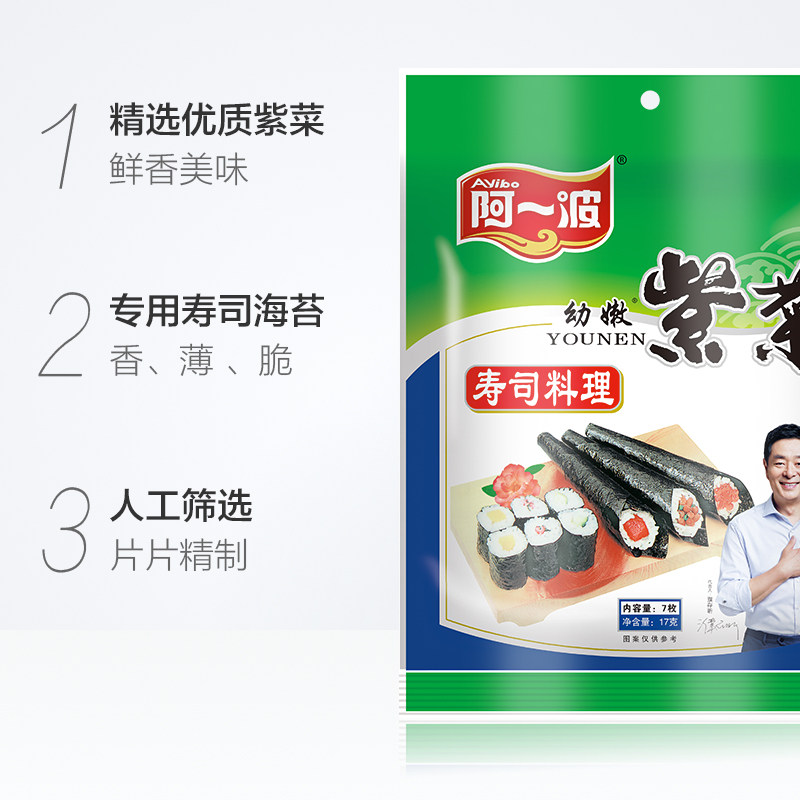 阿一波 Молодой нежный морской водоросль суши -водоросли морские водоросли рис морских водорослей, обернутые 17 г (7) ингредиенты суши ингредиенты жареные морские водоросли