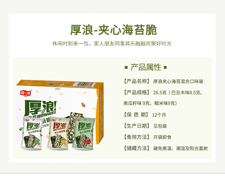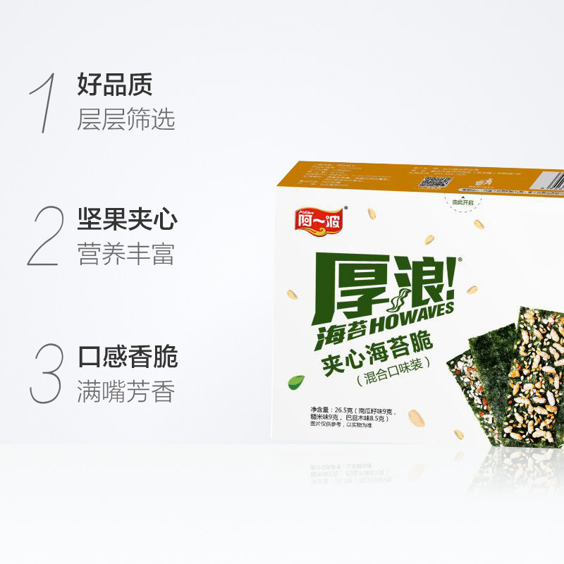 Волна бутербродов морских водорослей 26,5 г 即 食 食 食 阿 случайные детские закуски закуски и закуски, морские водоросли