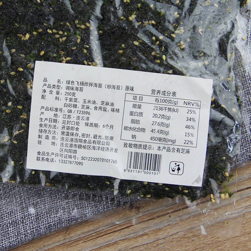 - Оригинальный кунжут жареные морские водоросли 250 г