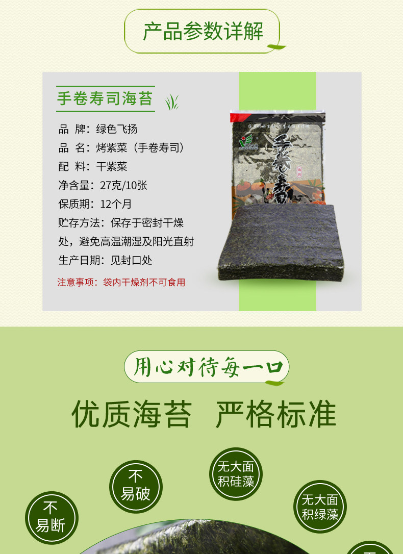 绿色飞扬 Суши -морские водоросли 10 кусочков кусочков из рисовых блюд с морскими водорослями, домашних материалов на гриле -водоросли блокбастеров морских водорослей
