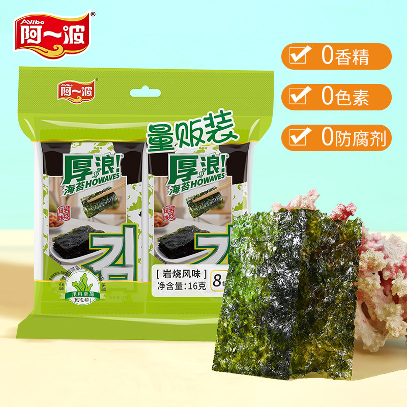 阿一波 Толстая волновая скала вкуса морских водорослей 16 грамм × 3 упаковки мгновенные повседневные закуски жареные таблетки морского мха детские бибимбап