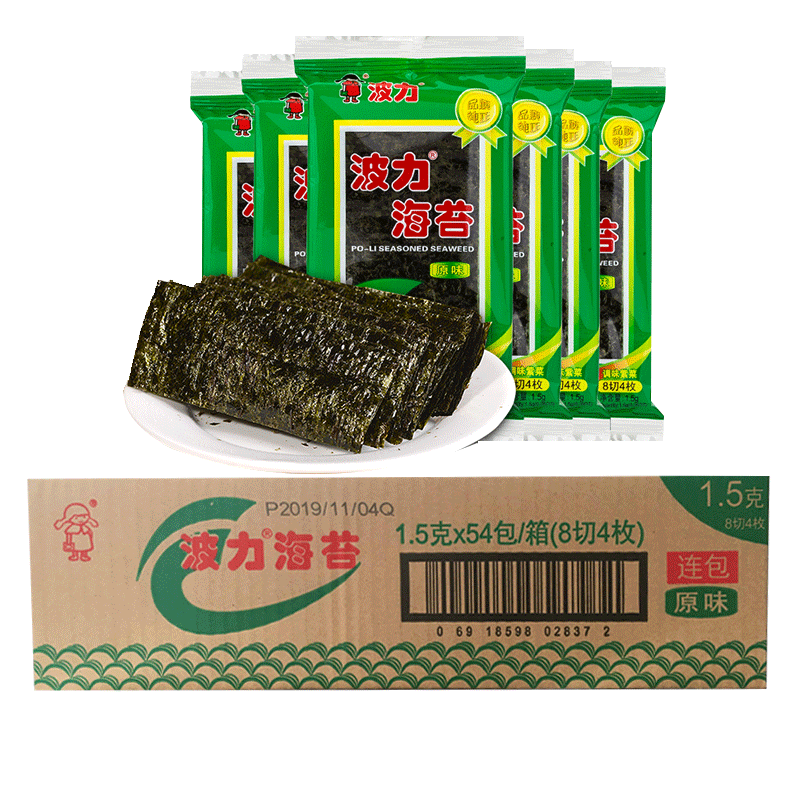 Морские водоросли Boli, оригинальный вкус, 1,5 г * 54 упаковки, большие пакеты готовых к употреблению детских закусок из морских водорослей, суши, целая коробка Xizhilang