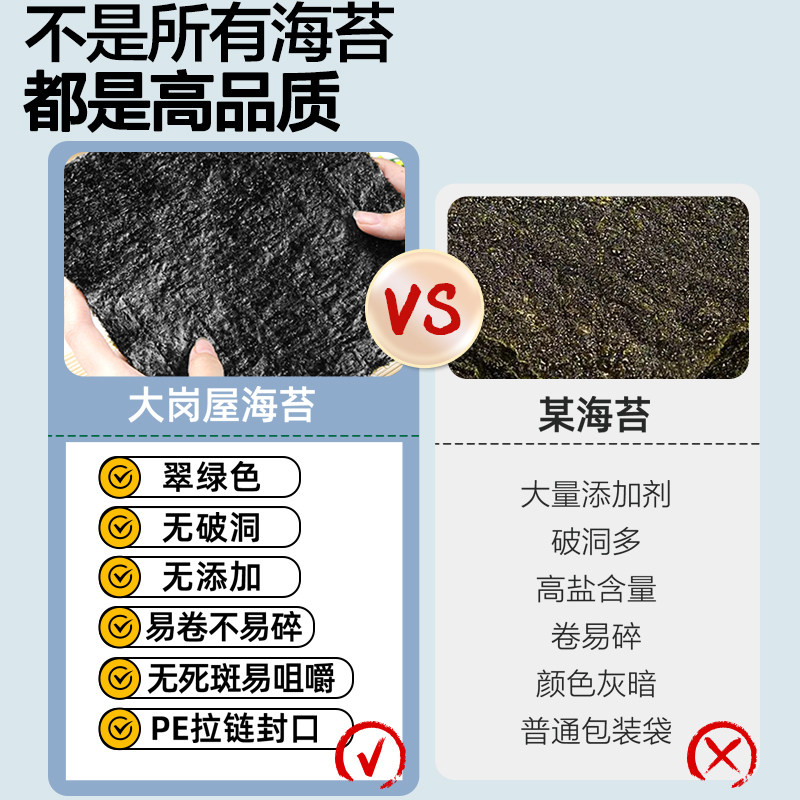 大岗屋 Большие кусочки морских водорослей для суши для приготовления риса из морских водорослей, специальные ингредиенты, набор бытовых инструментов, полный набор.