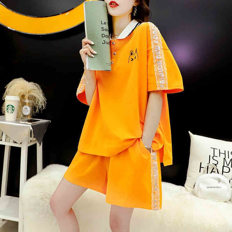 Летняя летняя одежда, комплект, шорты, штаны, большой размер, коллекция 2022, свободный крой, подходит для полных девушек, короткий рукав