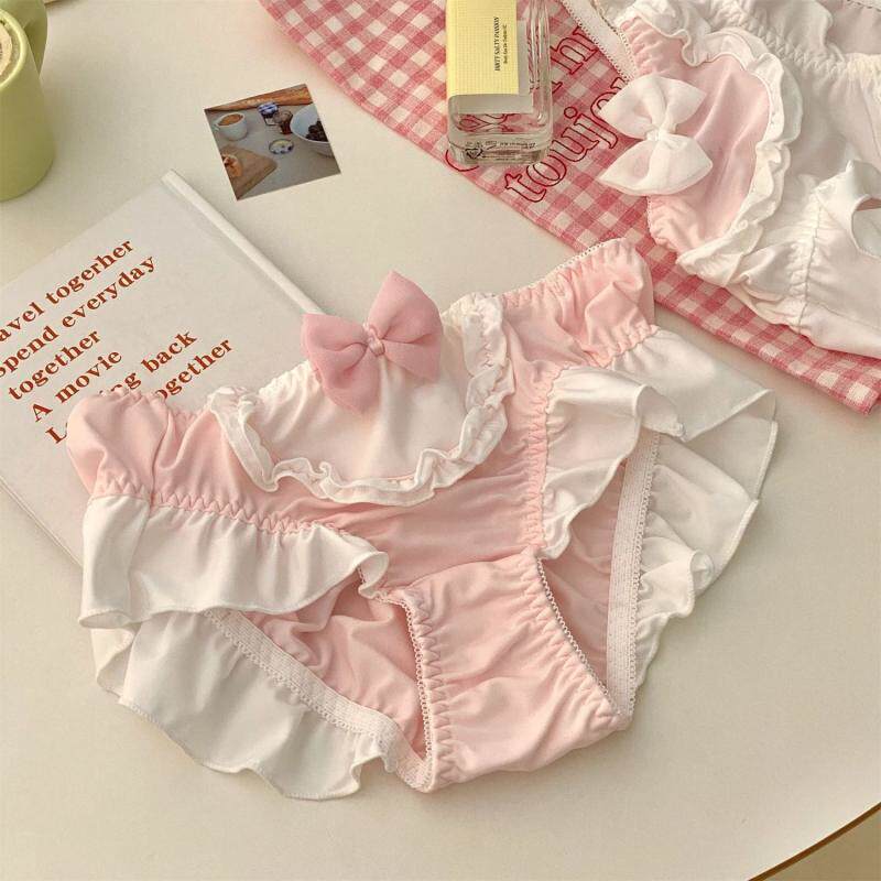Милое комфортное нижнее белье с бантиком, шелковистые трусы, стиль Лолита