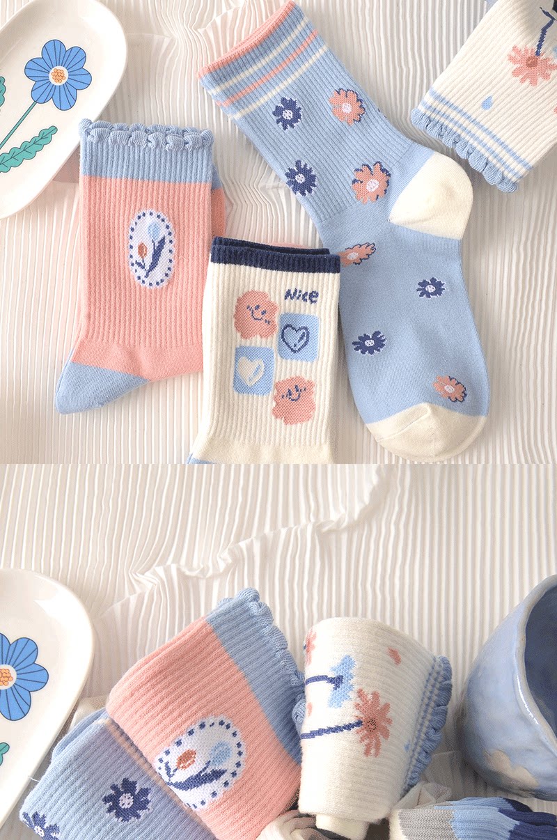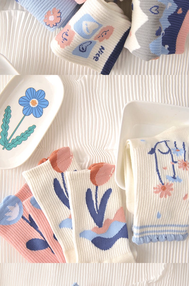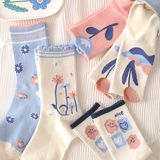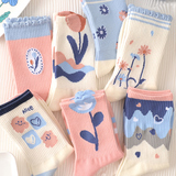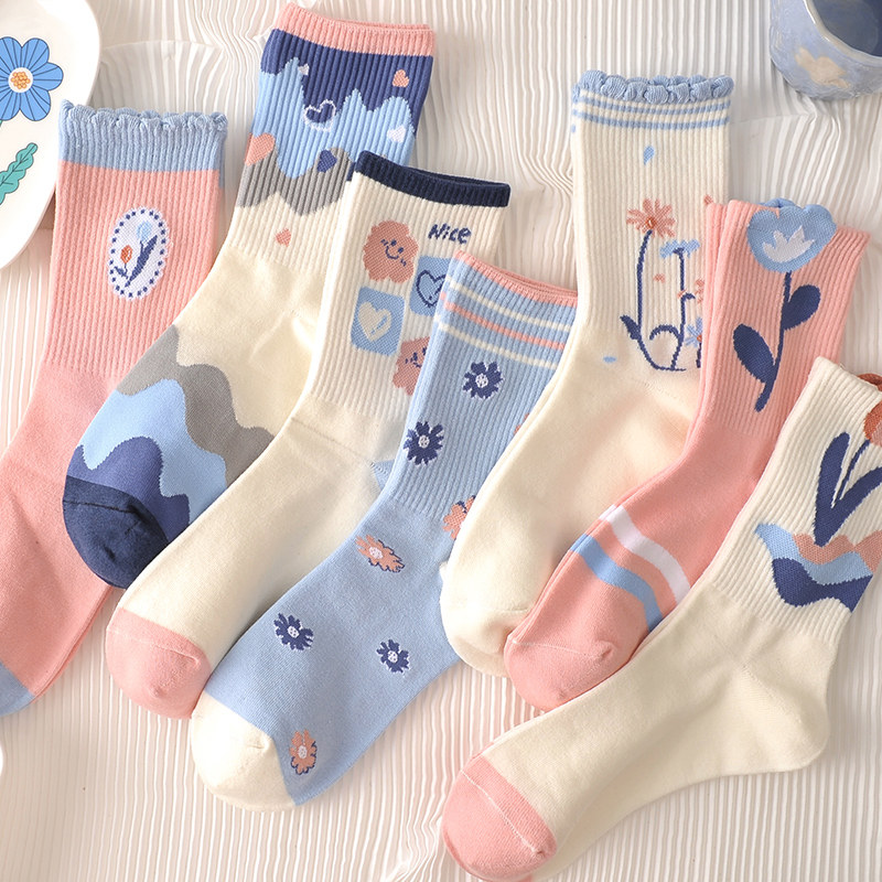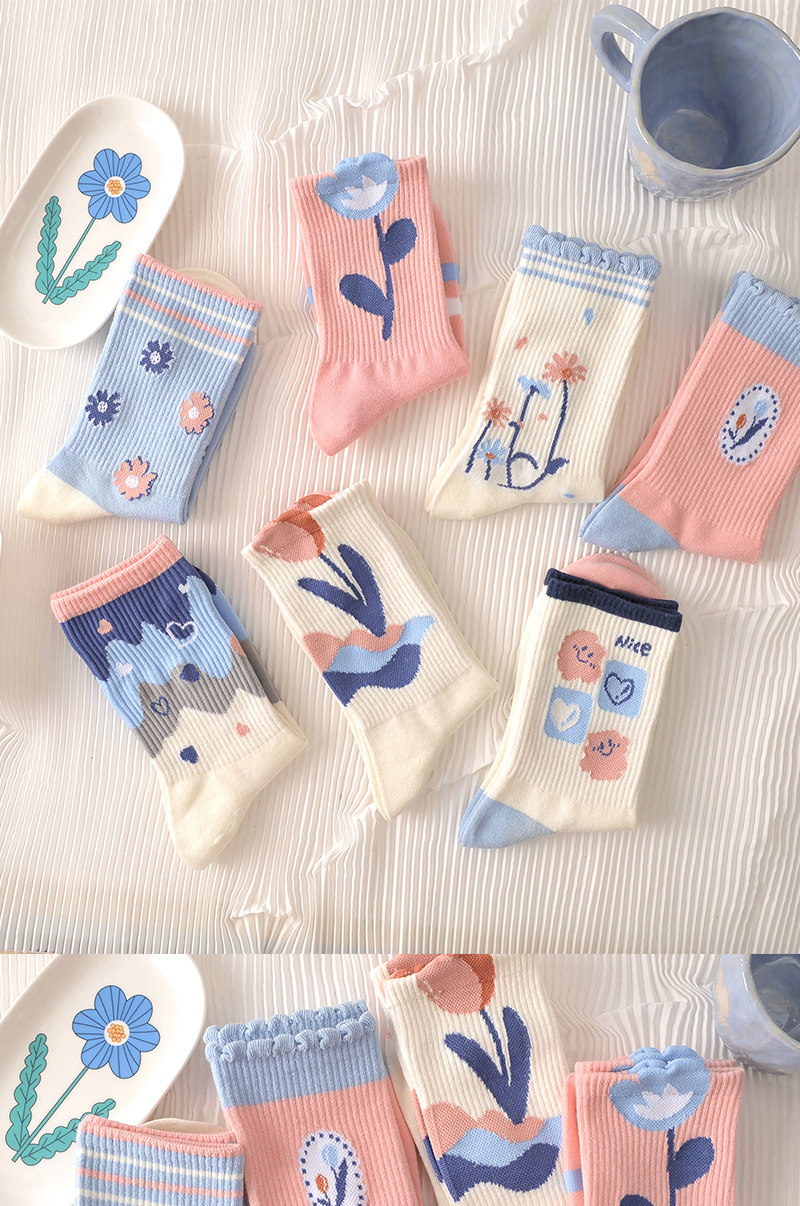 Tide, спортивные дышащие осенние носки для школьников, средней длины, в цветочек