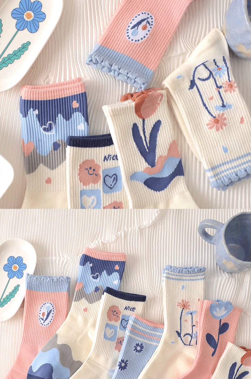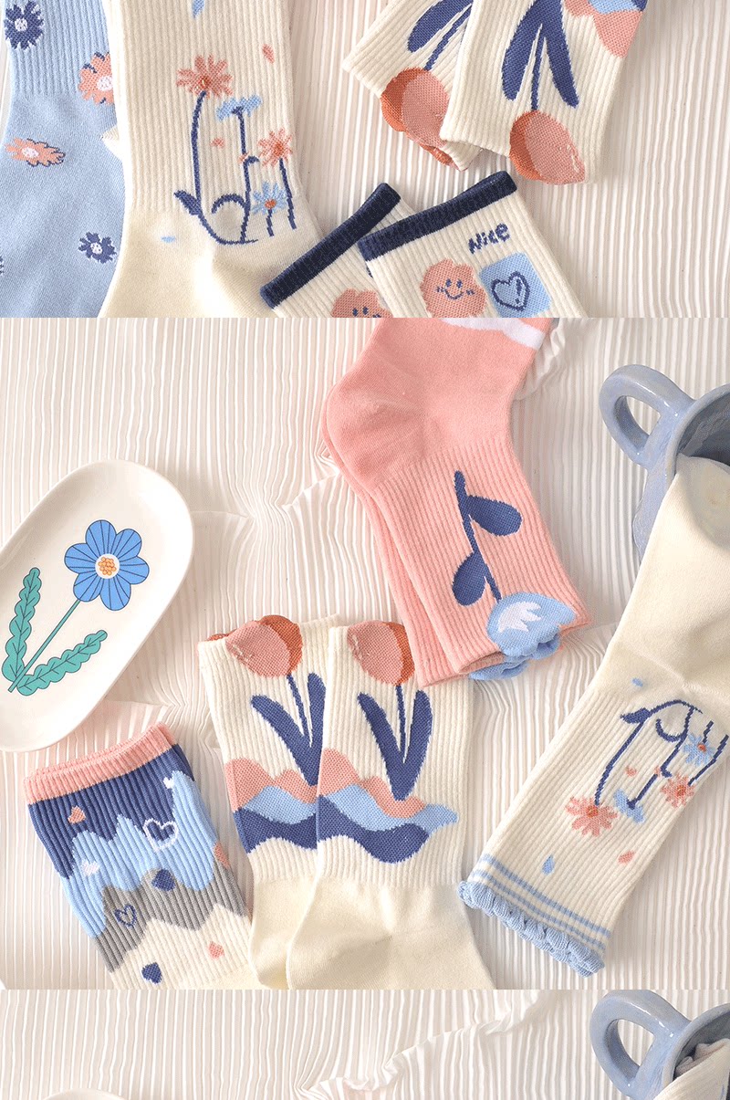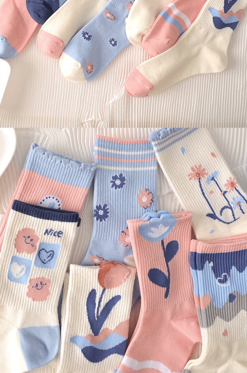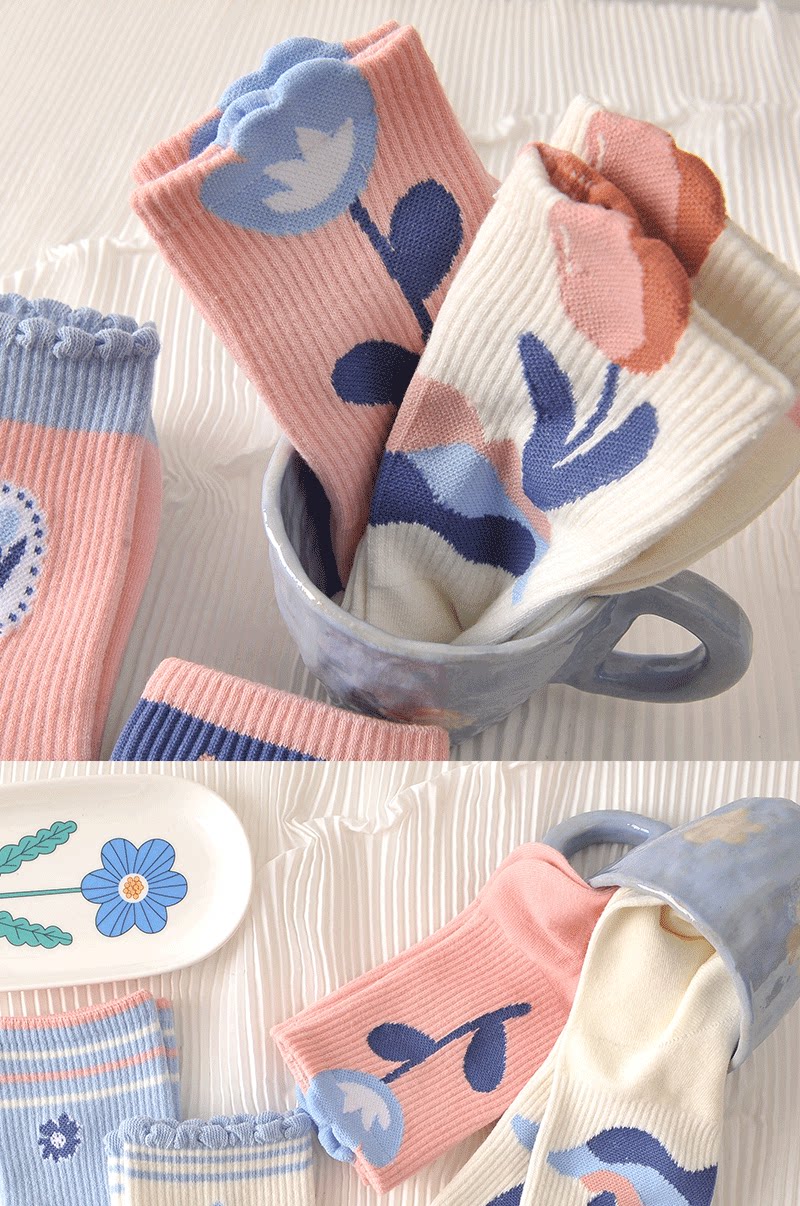 Tide, спортивные дышащие осенние носки для школьников, средней длины, в цветочек