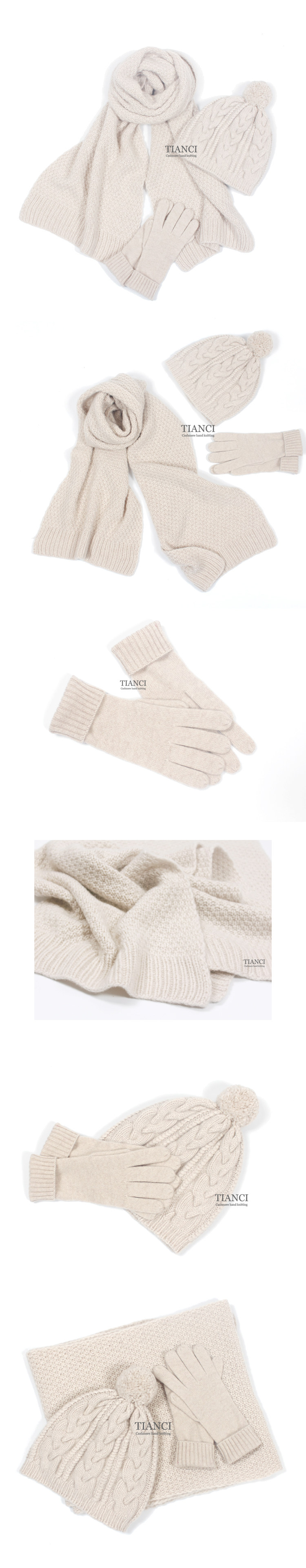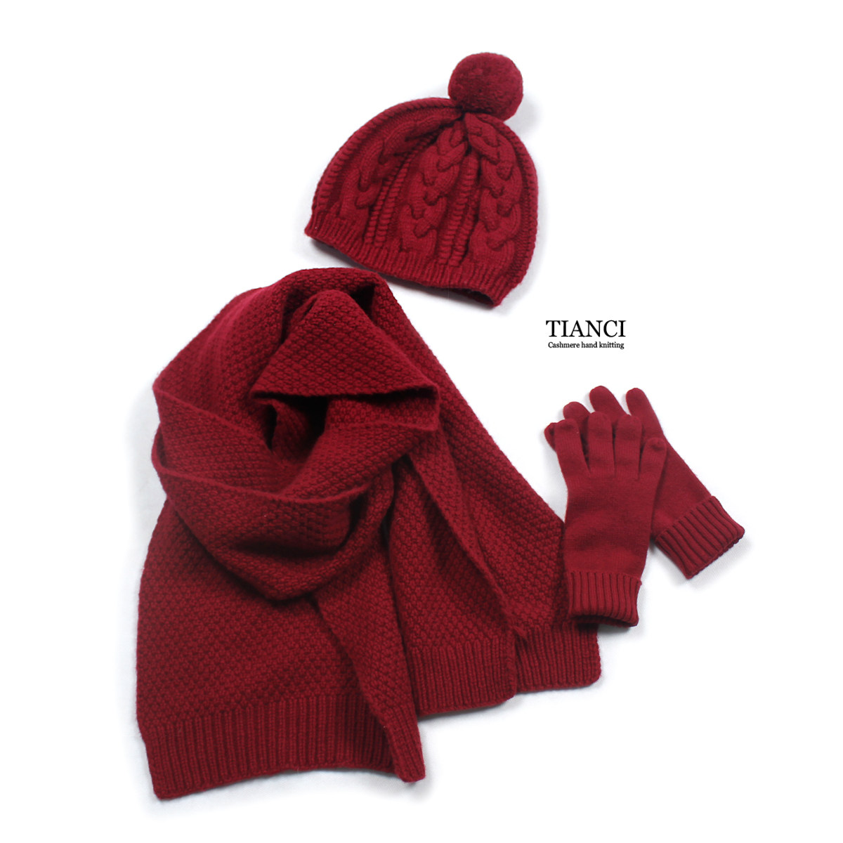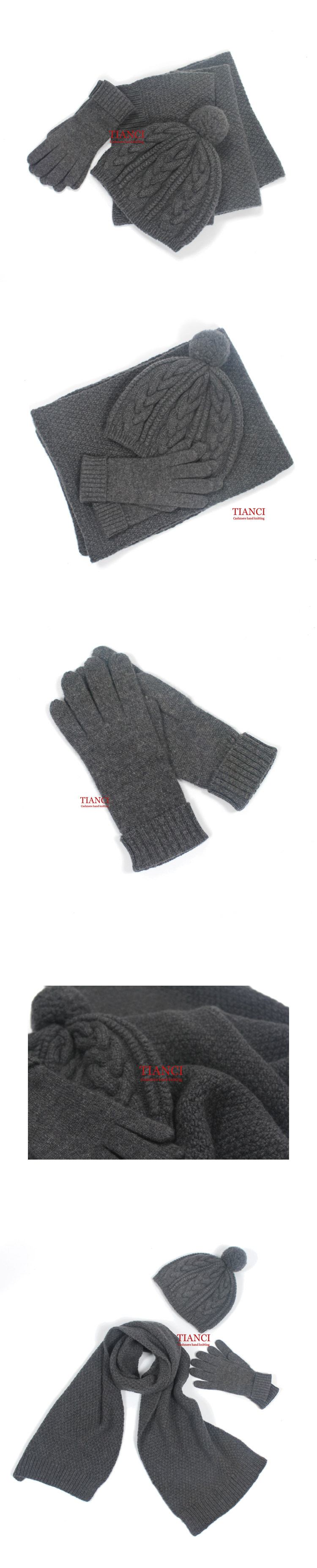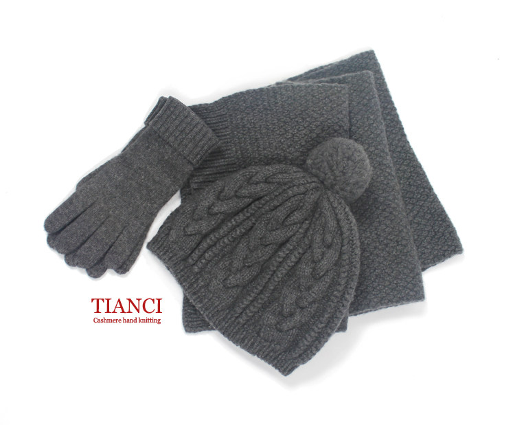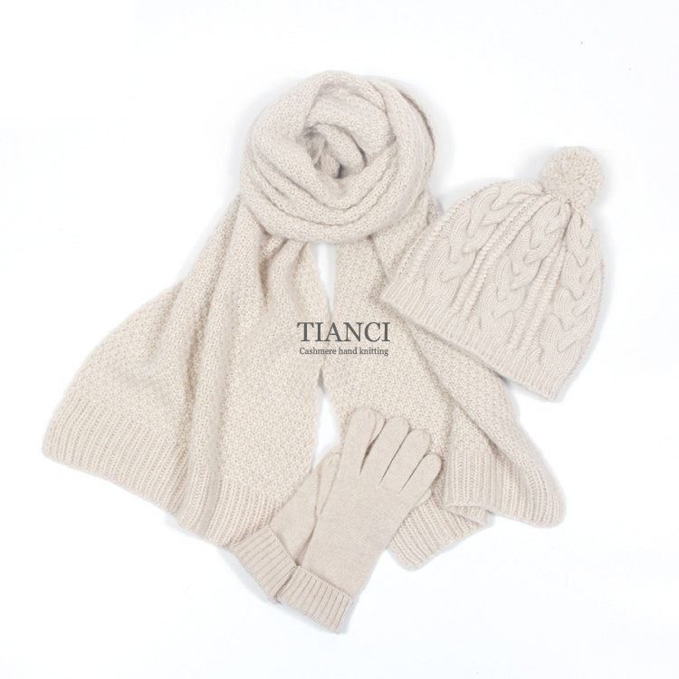 Зимняя классическая универсальная кашемировая шапка ручной работы, перчатки, удерживающий тепло шарф, комплект, 3 предмета