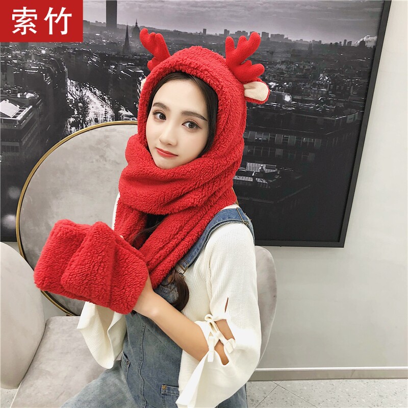 Шапка, шарф, перчатки, утепленный комплект, шарф-платок для школьников и студентов, в корейском стиле, 3 предмета, подарок на день рождения