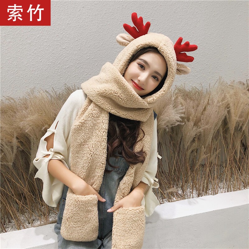 Универсальные демисезонные милые детские перчатки, шарф, флисовая шапка, в корейском стиле