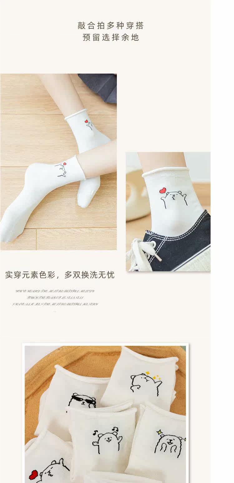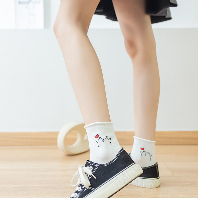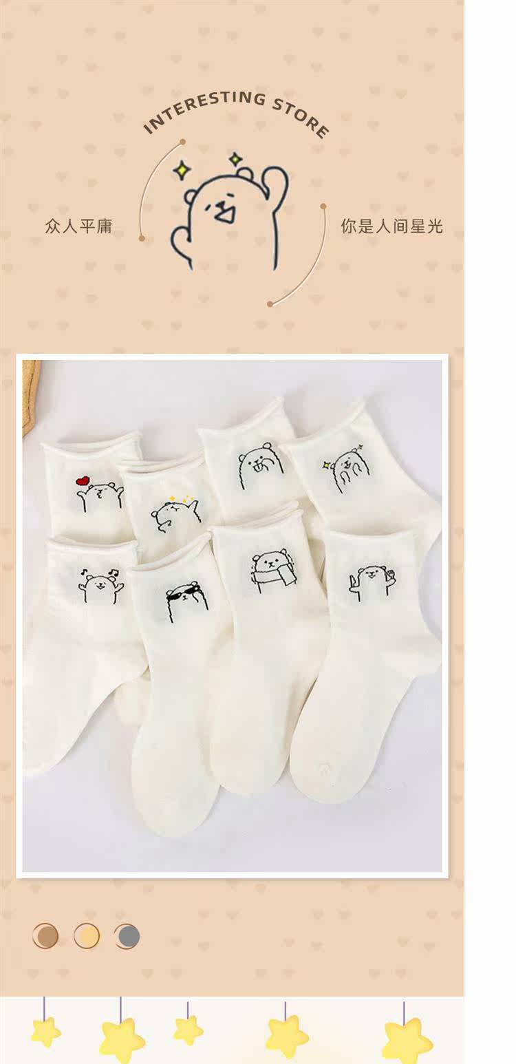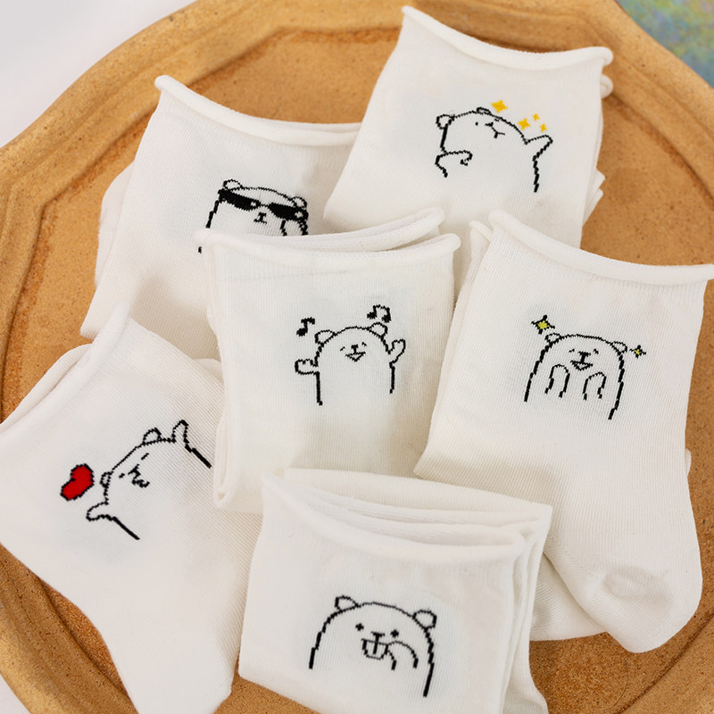 Tide, белые осенние тонкие мультяшные японские носки, милые гольфы, с медвежатами, средней длины