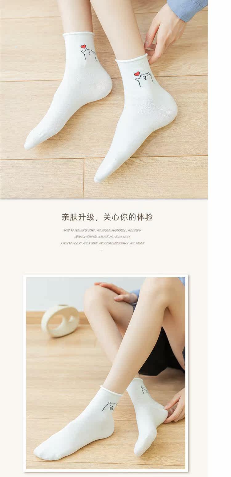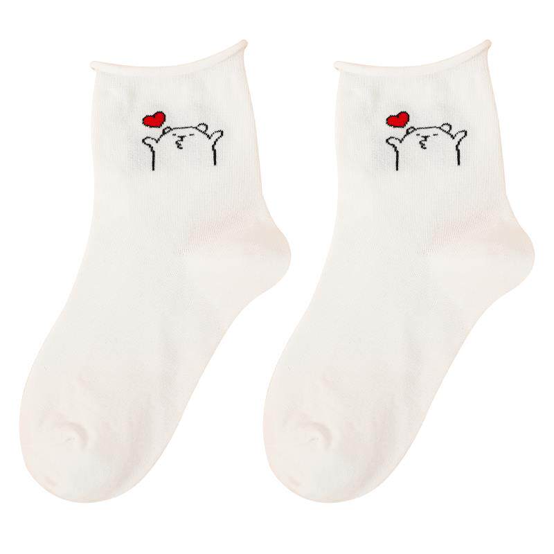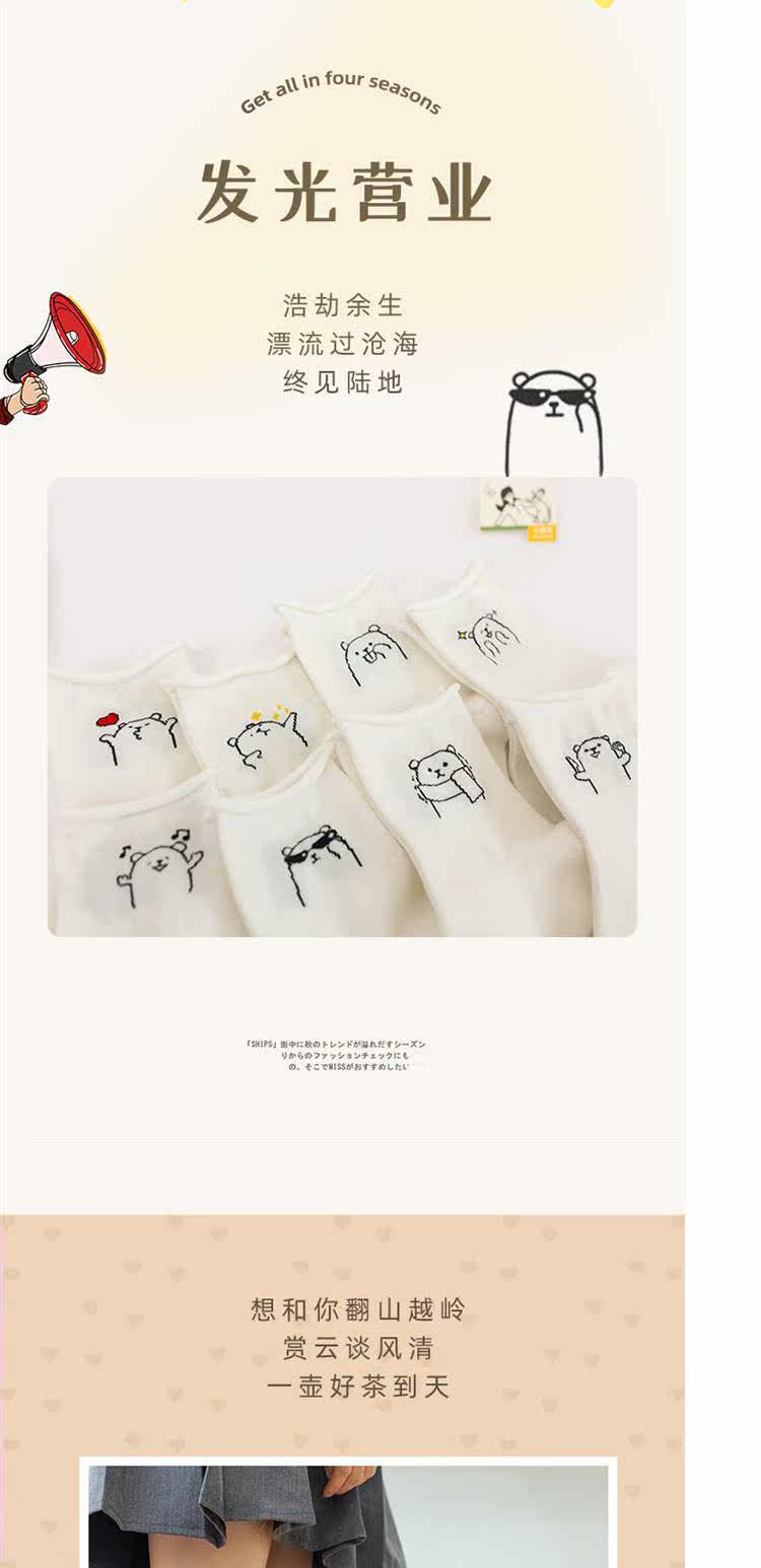 Tide, белые осенние тонкие мультяшные японские носки, милые гольфы, с медвежатами, средней длины