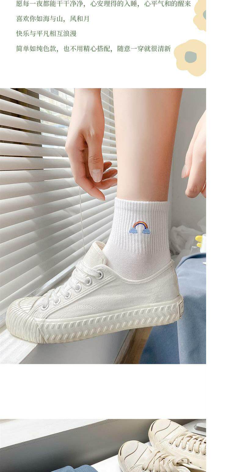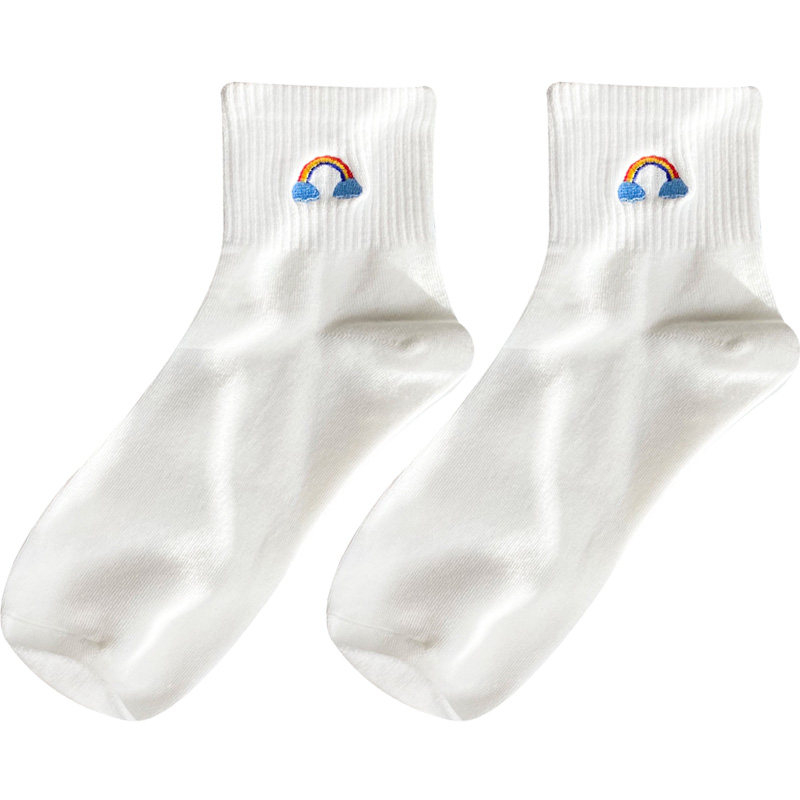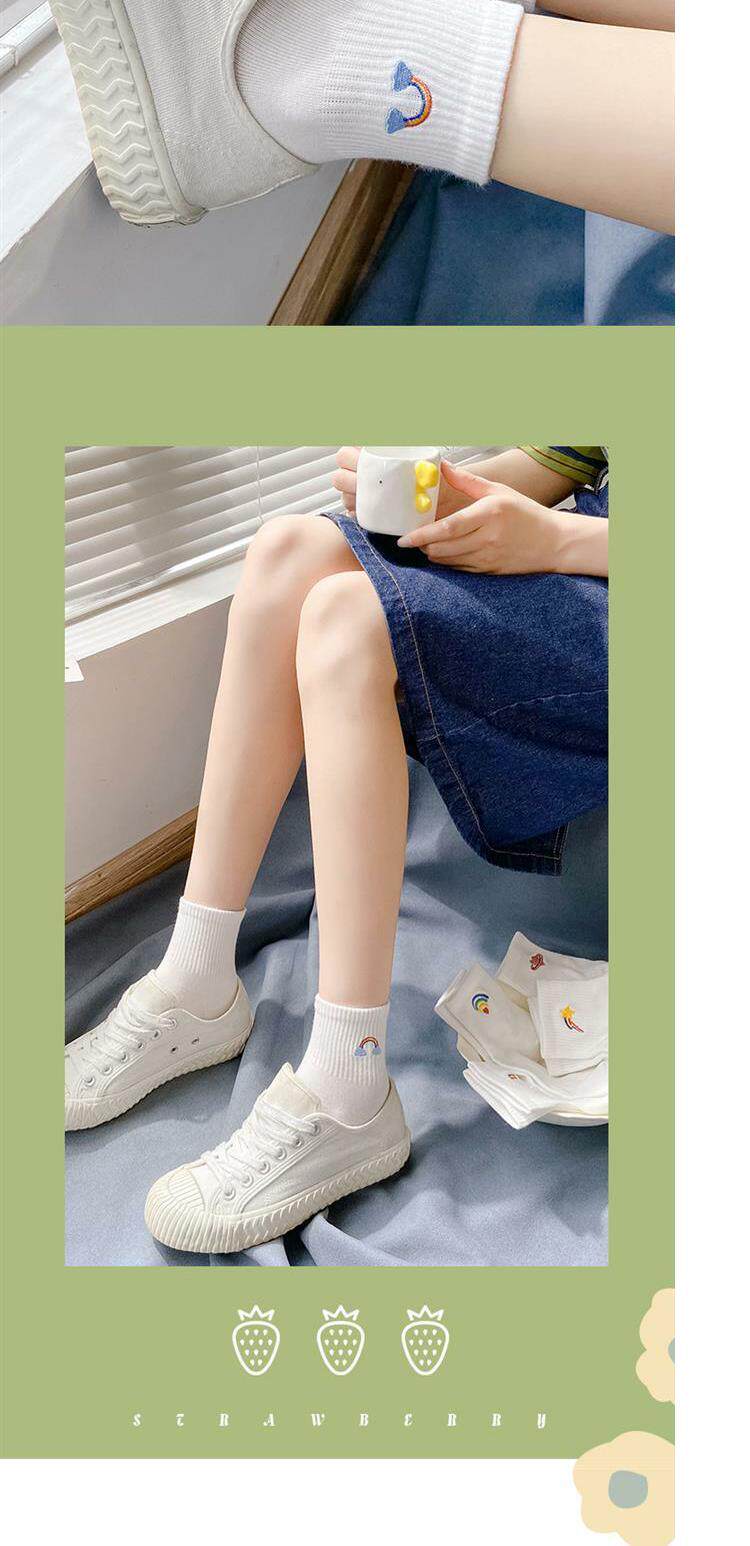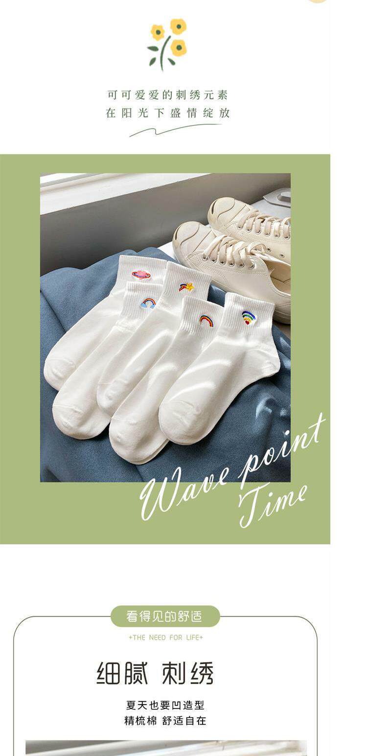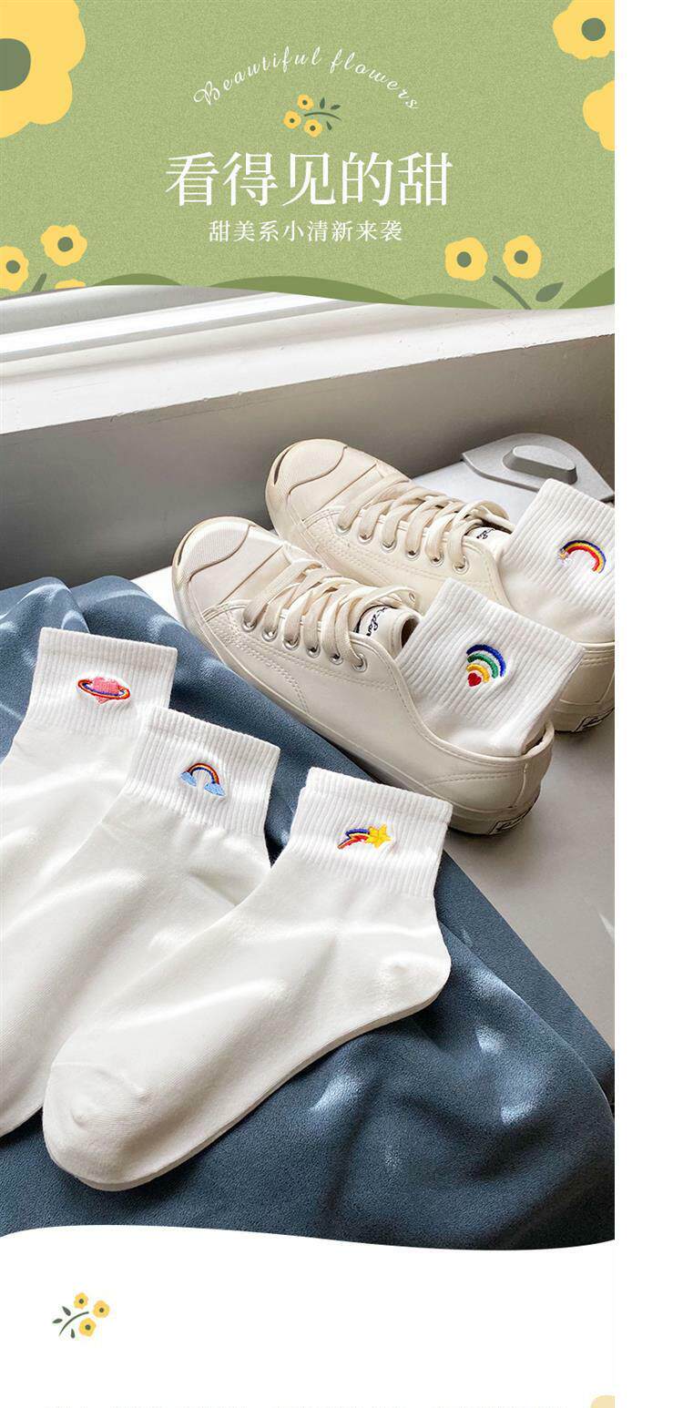 Tide, белые носки, тонкие милые гольфы, средней длины, с вышивкой