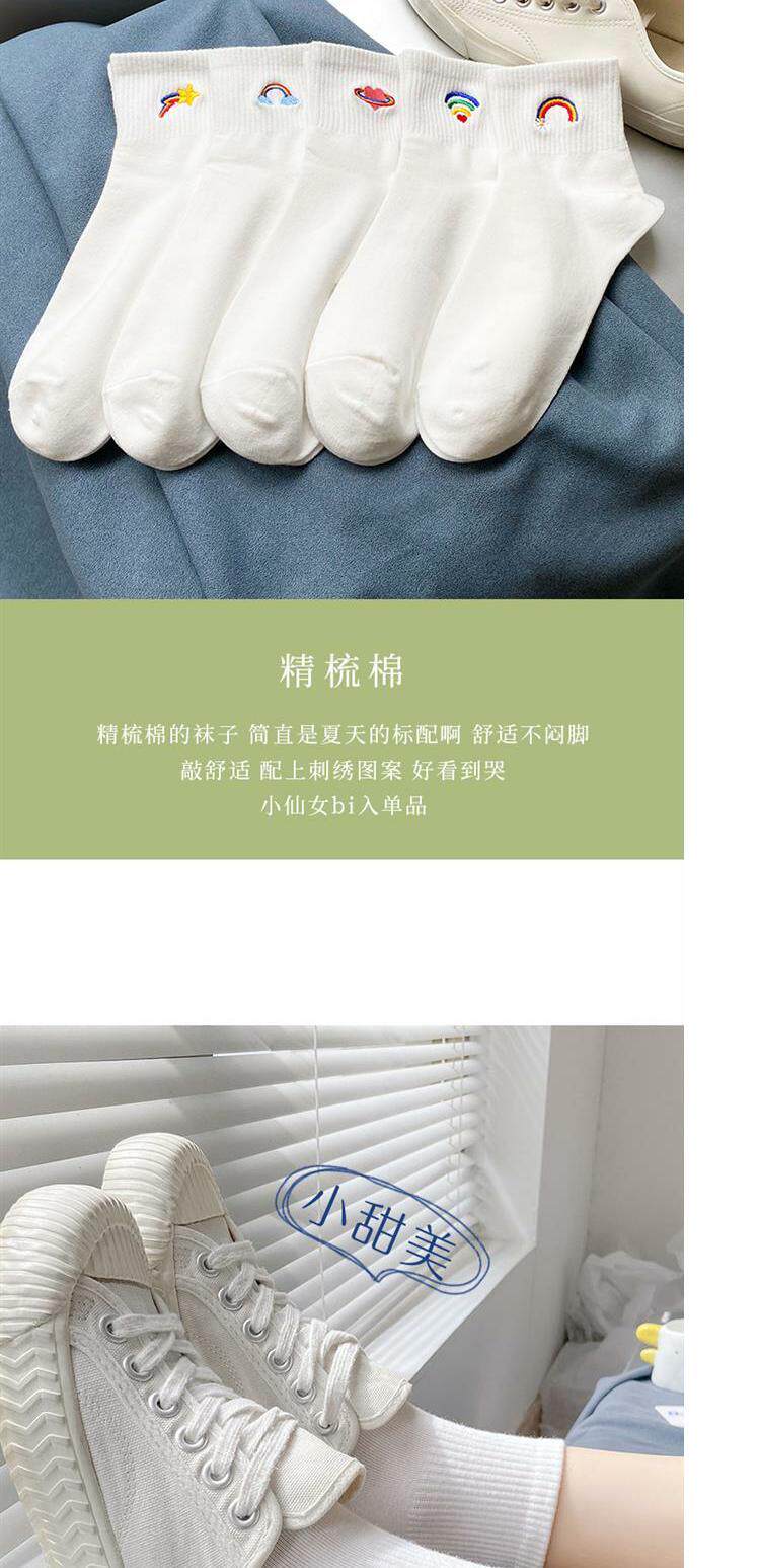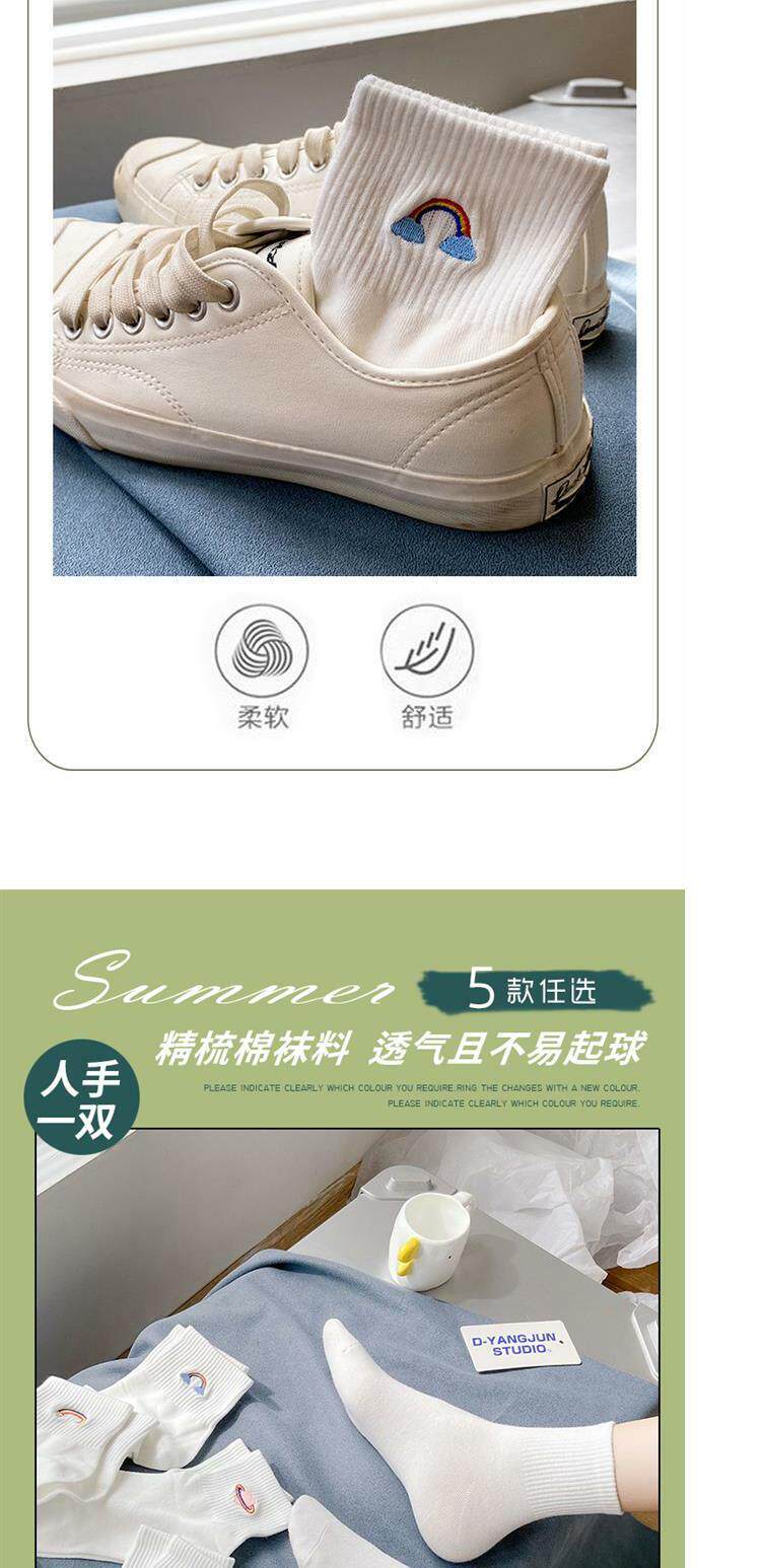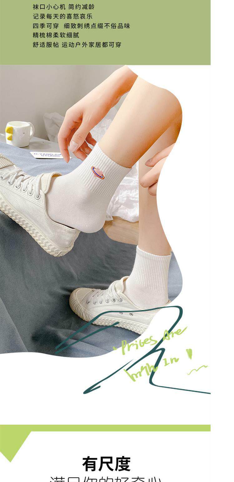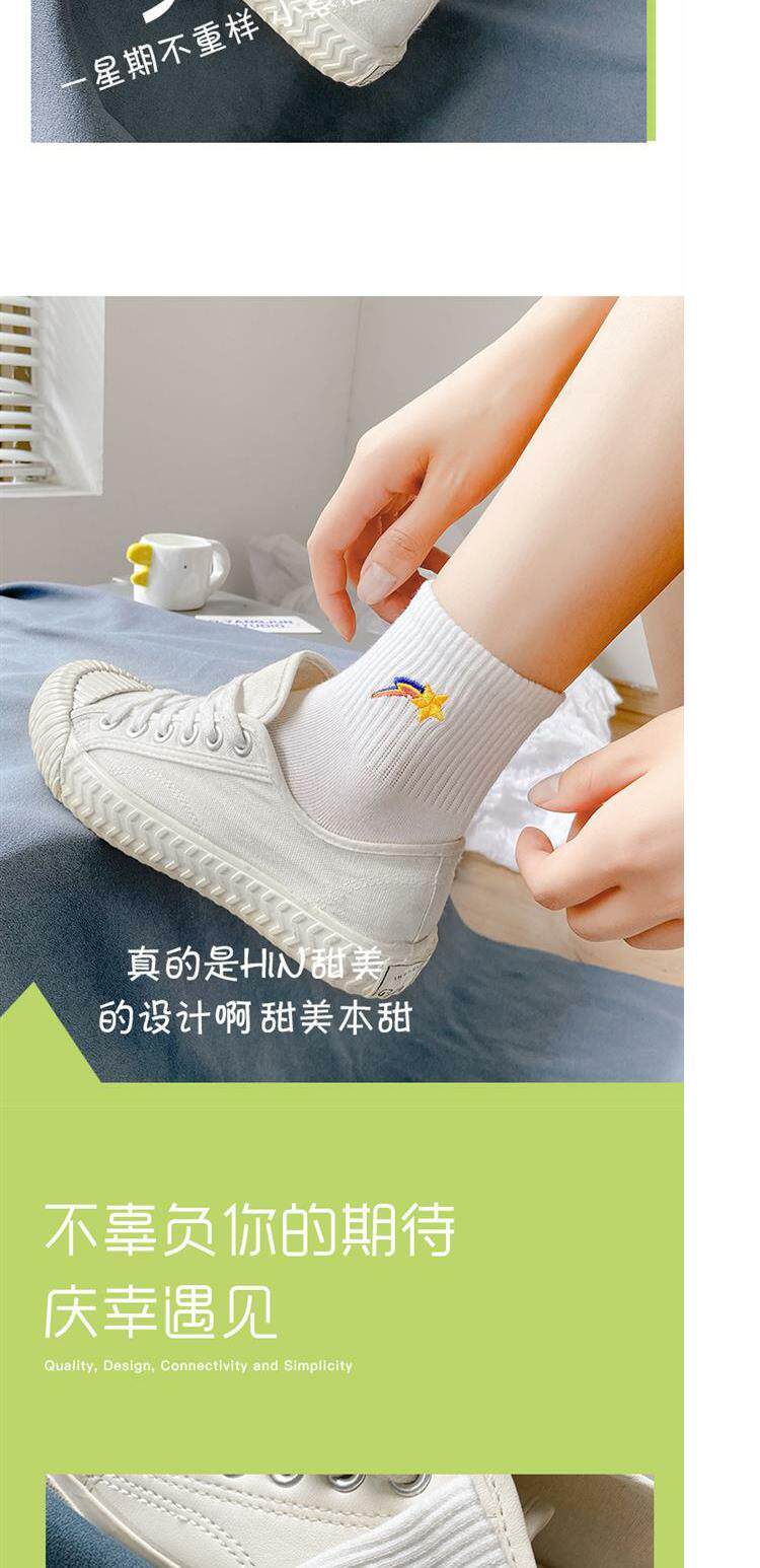Tide, белые носки, тонкие милые гольфы, средней длины, с вышивкой