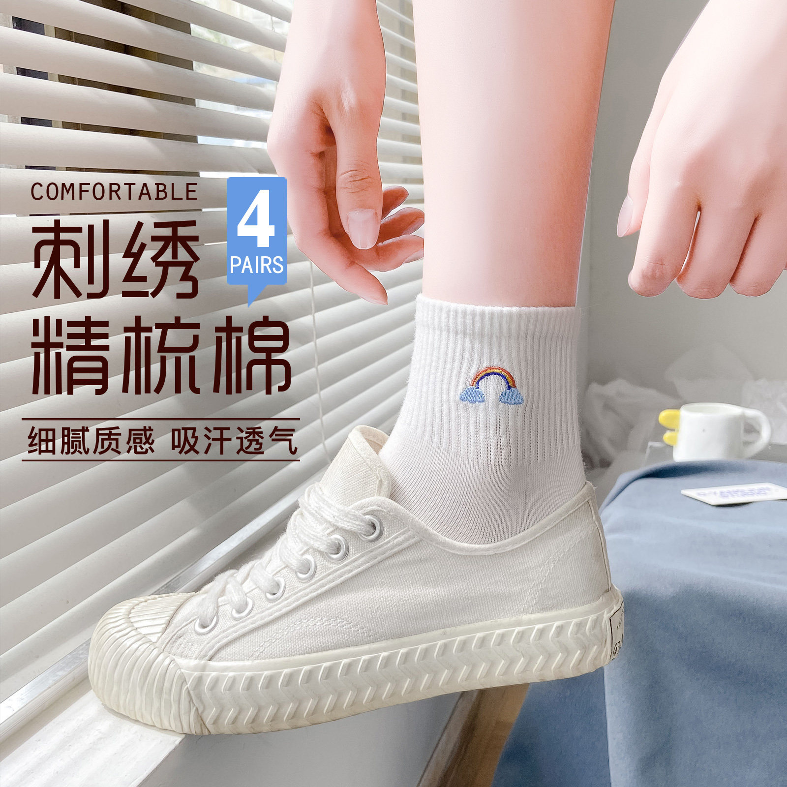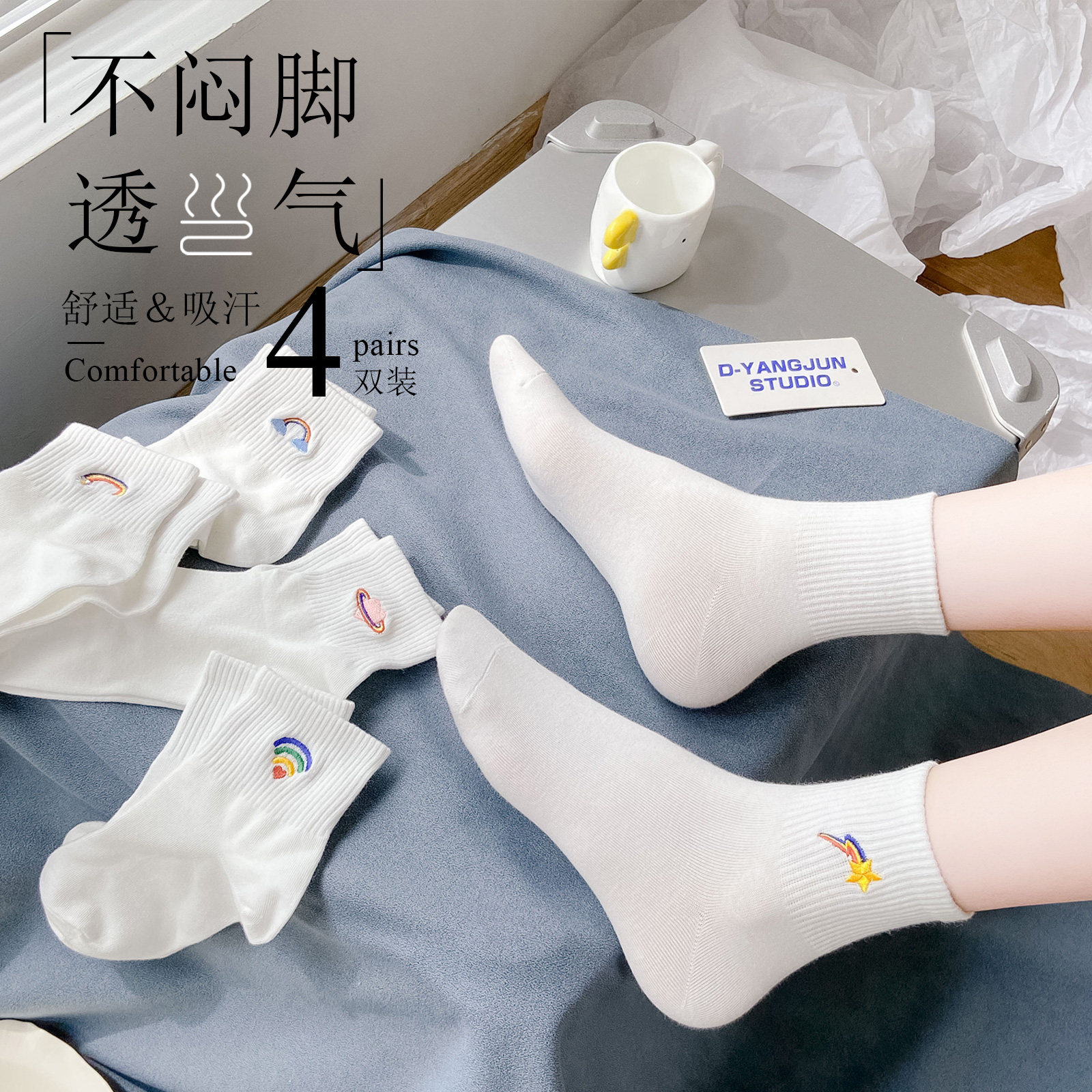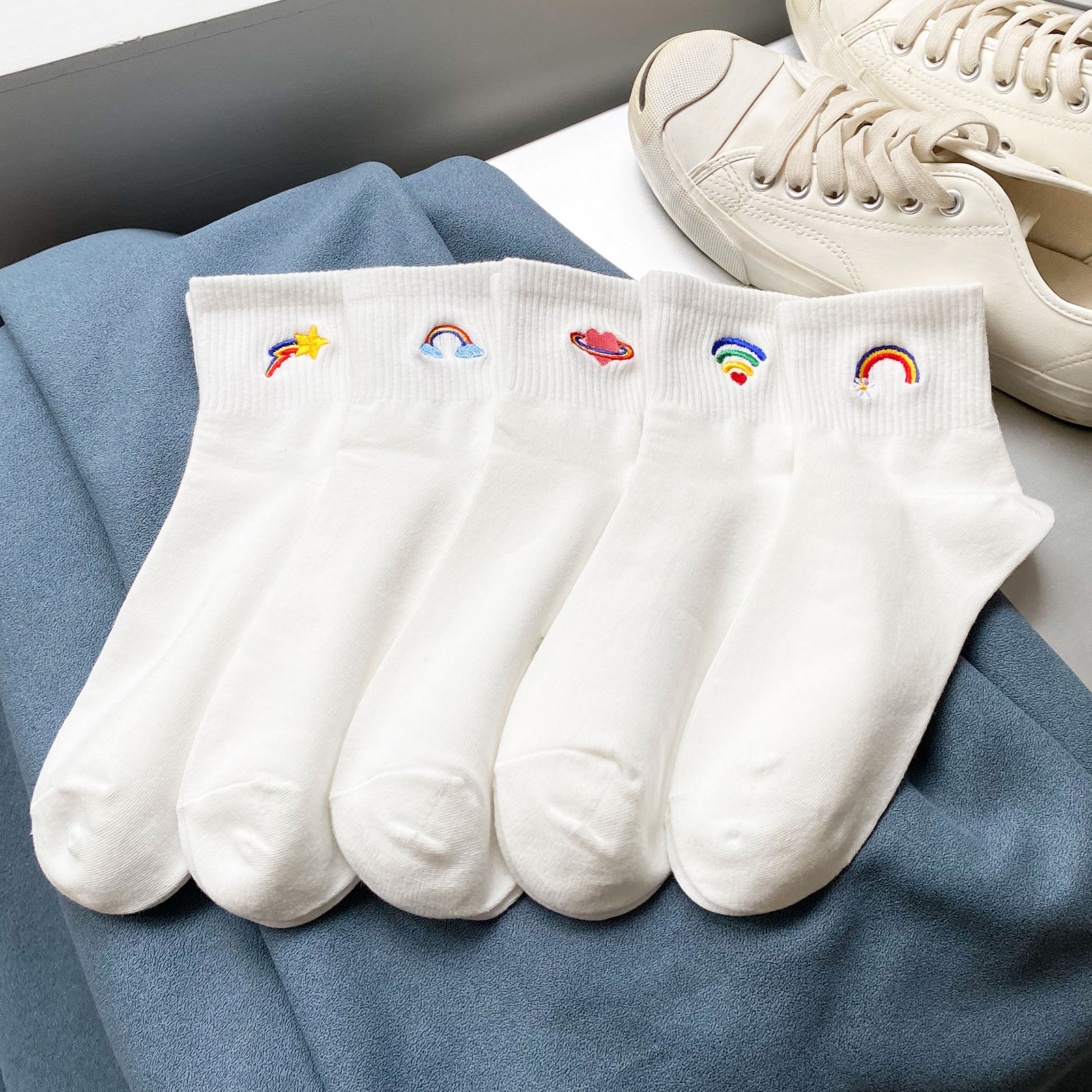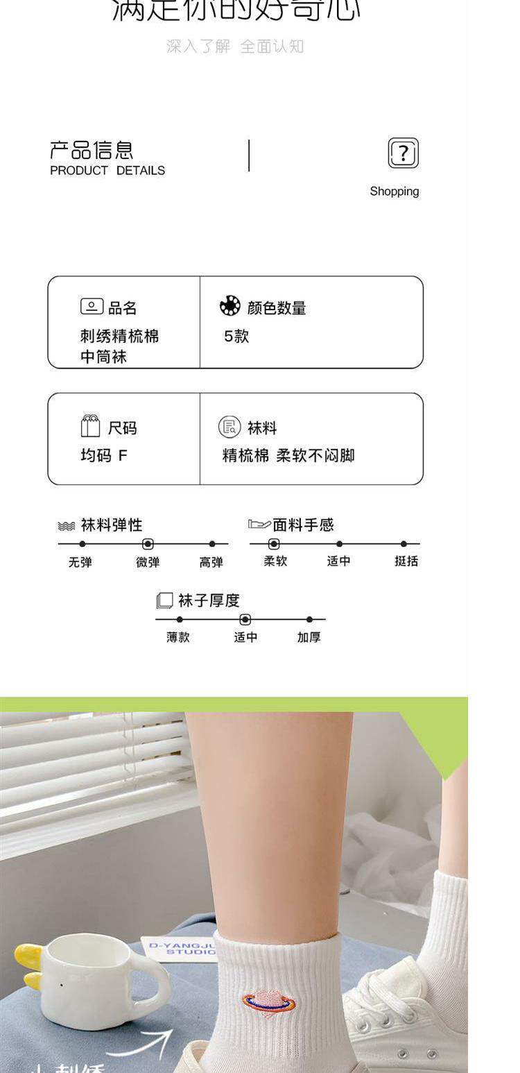 Tide, белые носки, тонкие милые гольфы, средней длины, с вышивкой