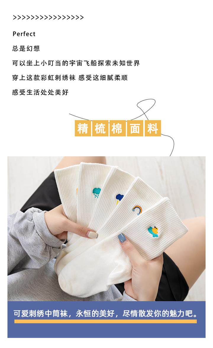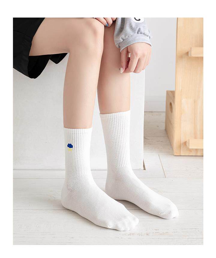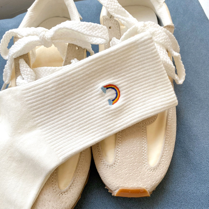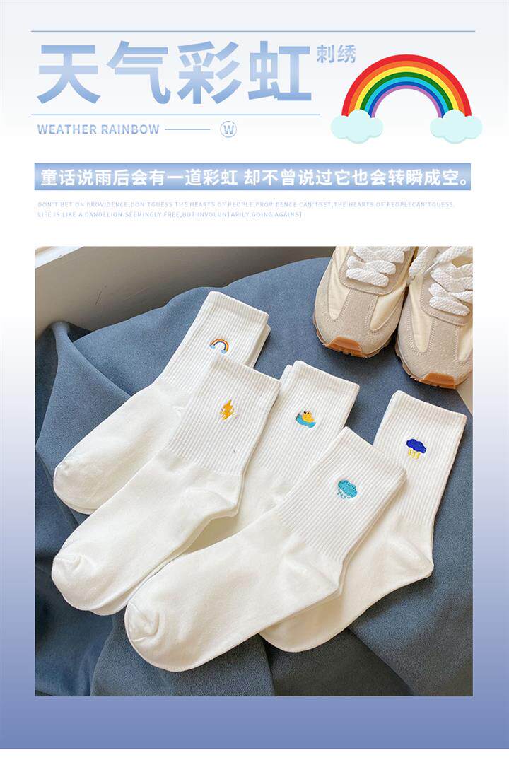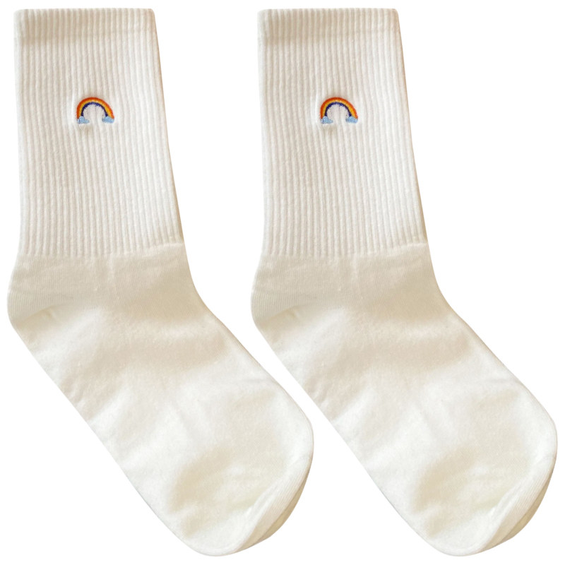 Tide, белые радужные милые японские мультяшные спортивные носки, средней длины