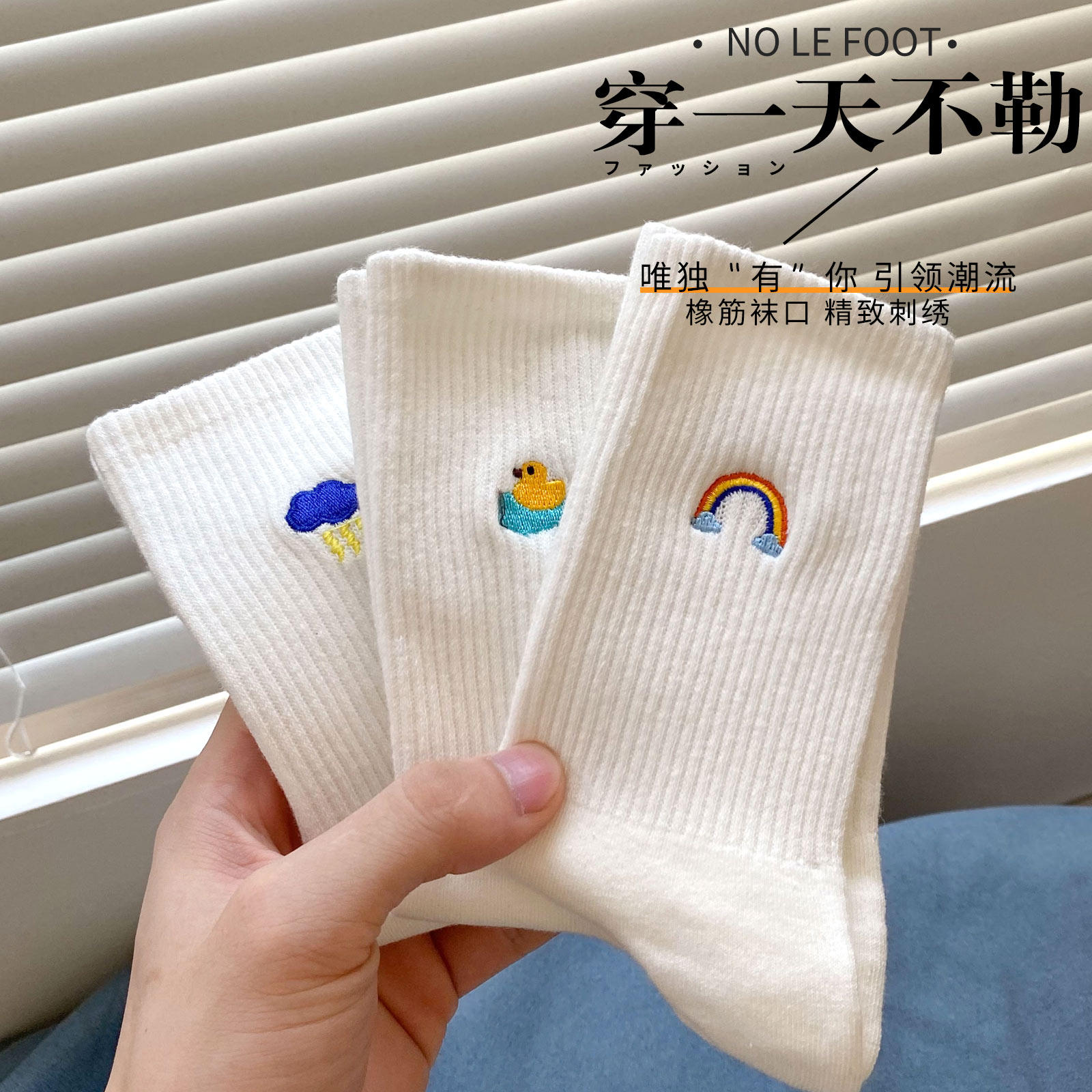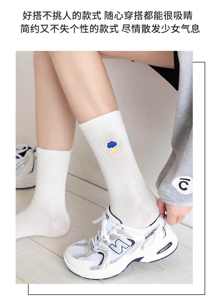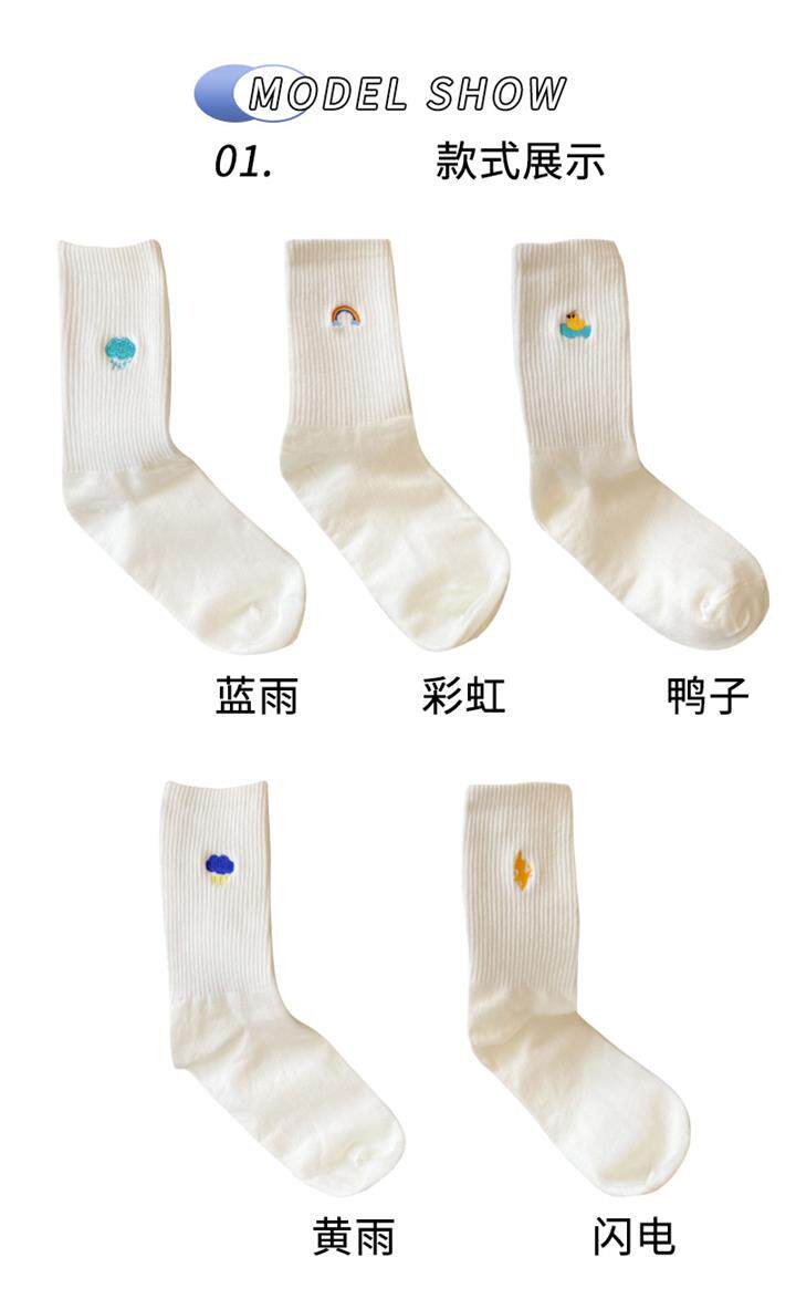 Tide, белые радужные милые японские мультяшные спортивные носки, средней длины
