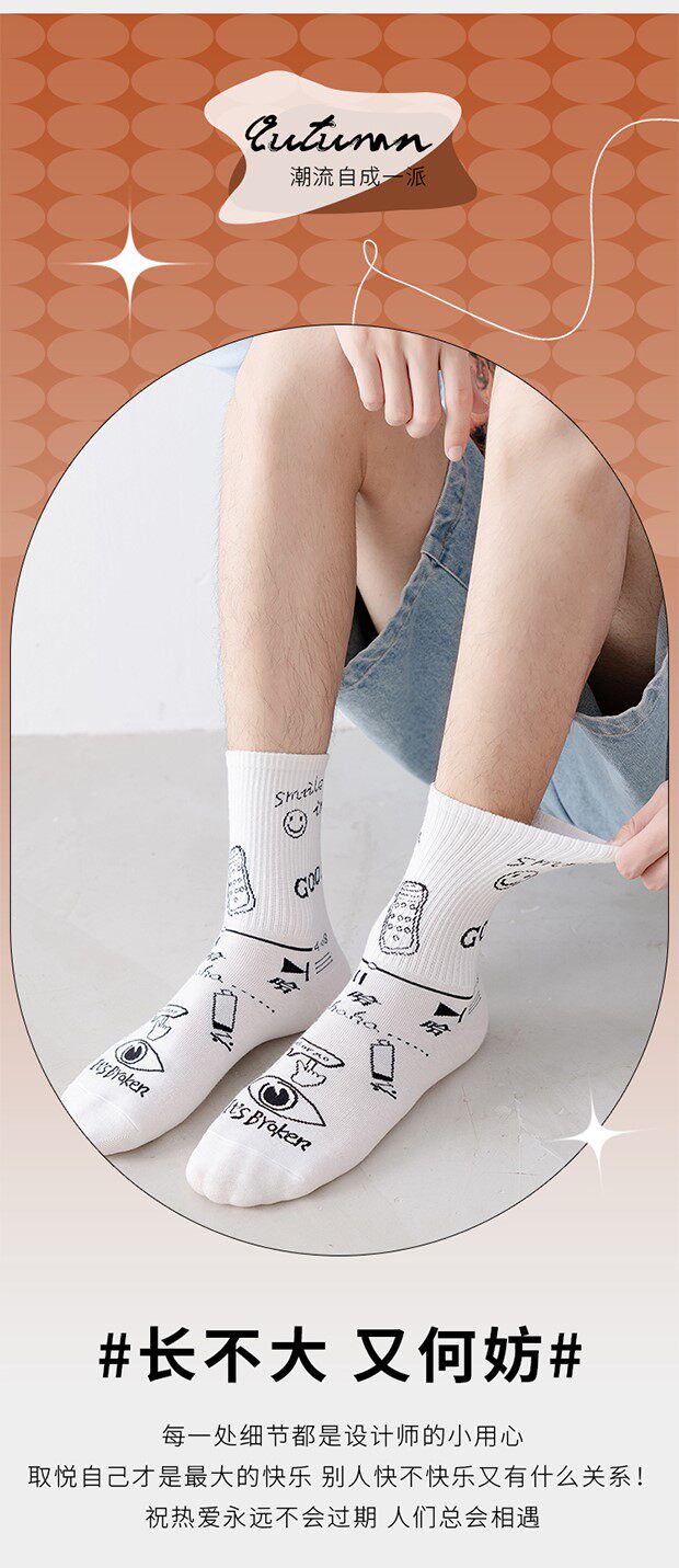 Tide, носки, хлопковые белые осенние гольфы, средней длины