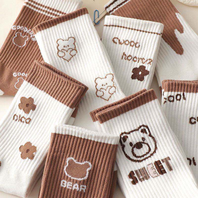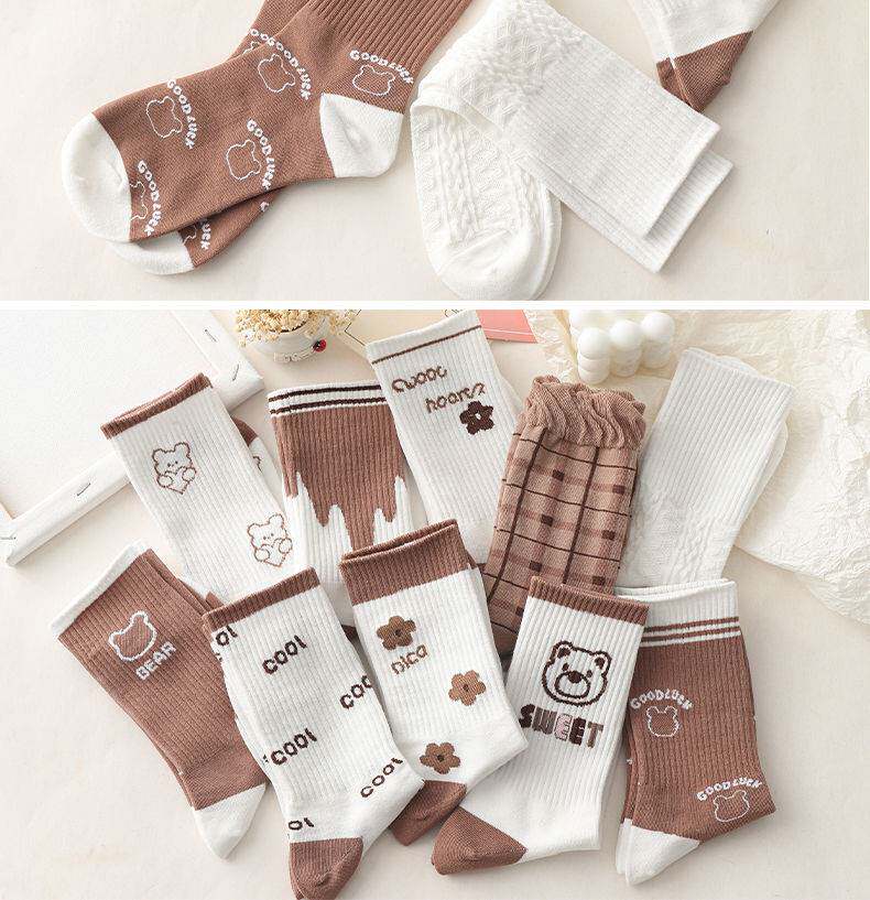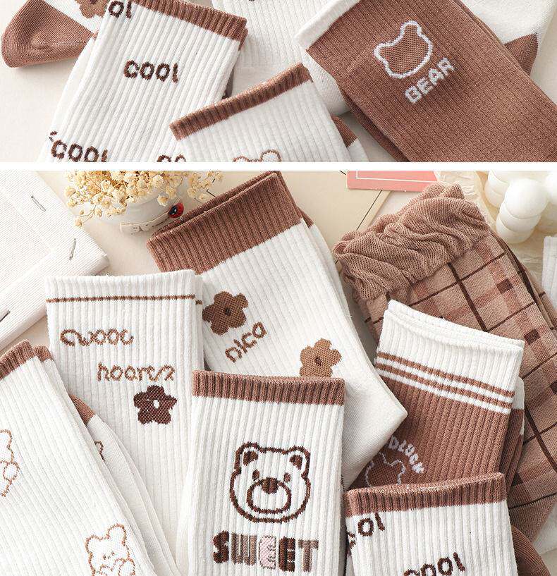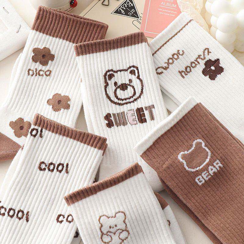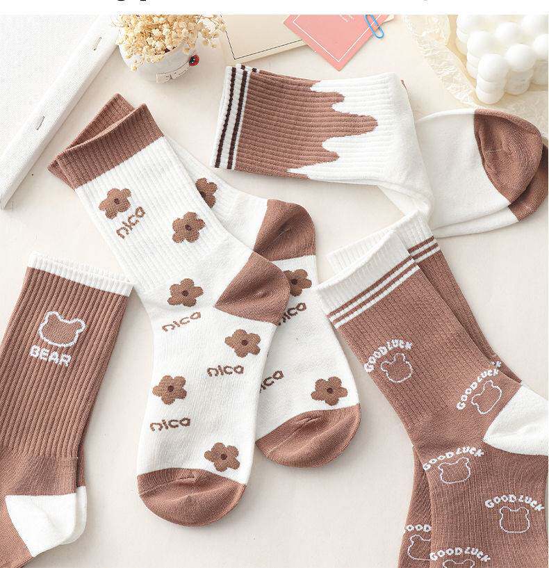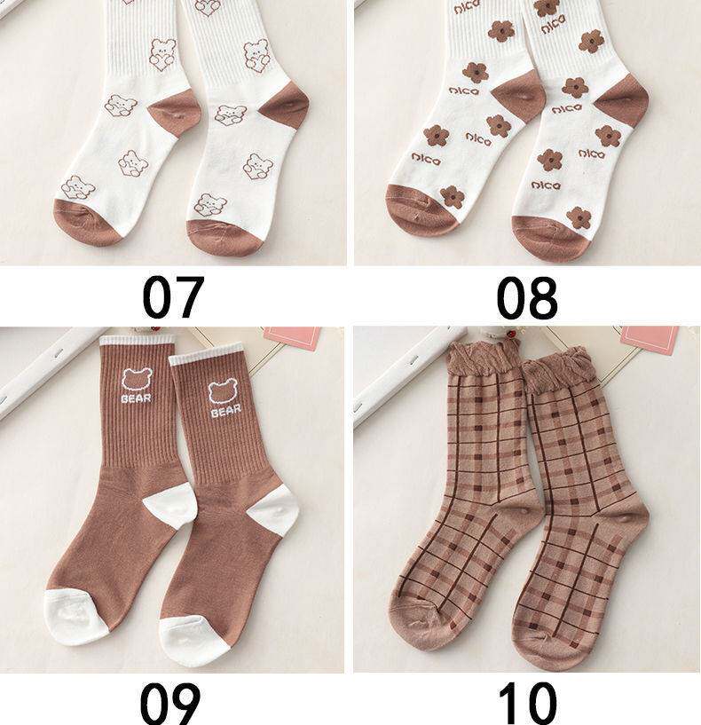 Tide, хаки носки, японские милые кофейные ретро демисезонные гольфы, средней длины
