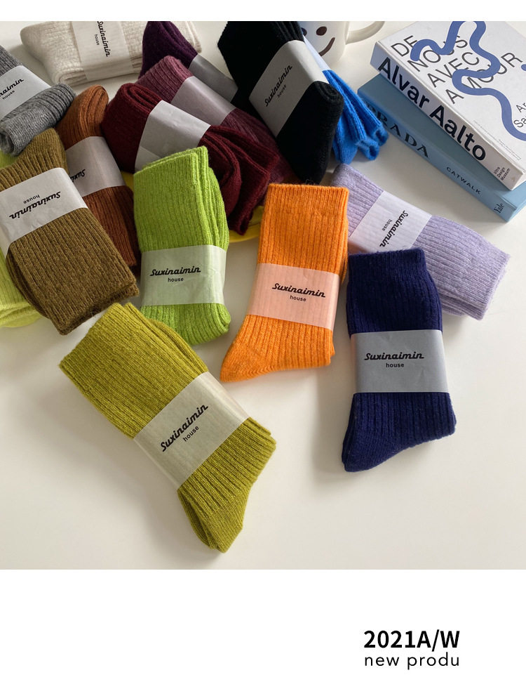 Демисезонные носки, шерстяные ретро удерживающие тепло гольфы, увеличенная толщина, средней длины
