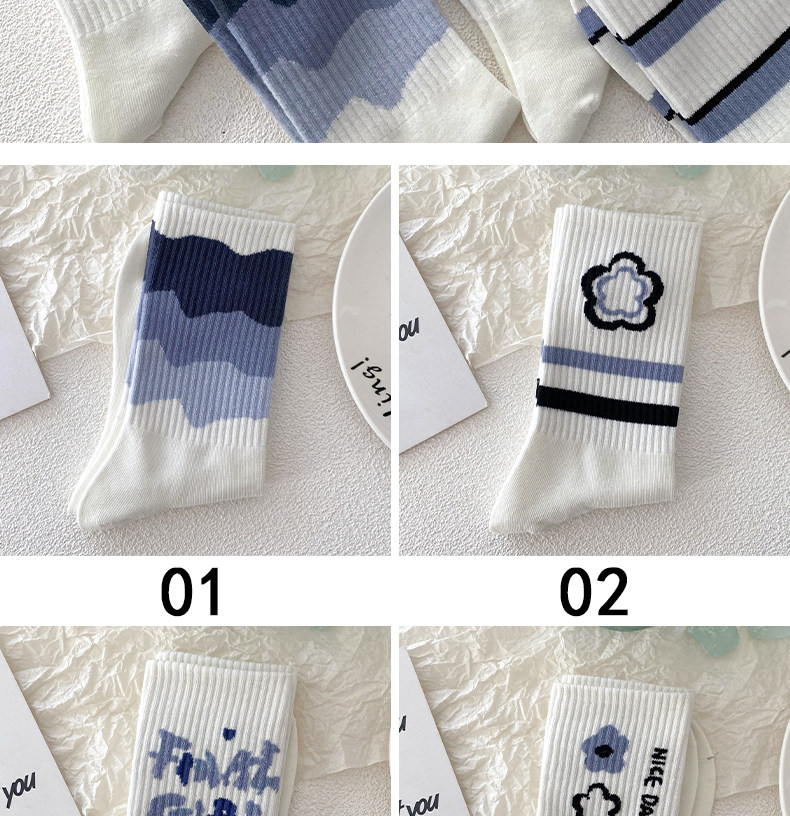Tide, синие носки, летние милые белые гольфы, средней длины