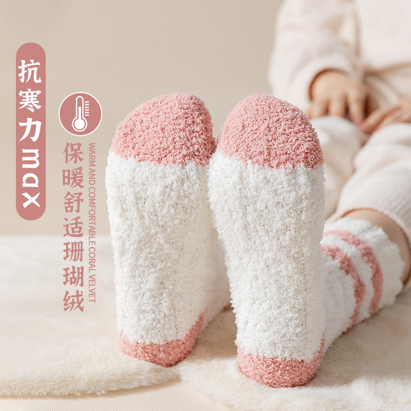Коралловые бархатные демисезонные утепленные зимние удерживающие тепло носки для беременных, средней длины