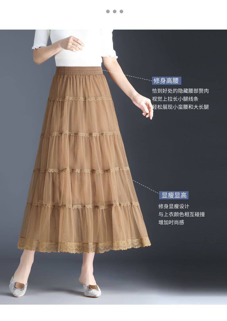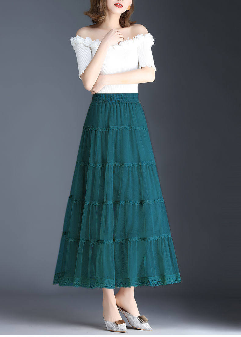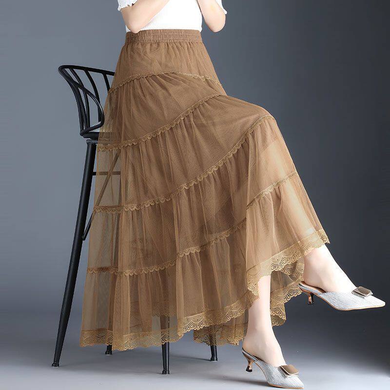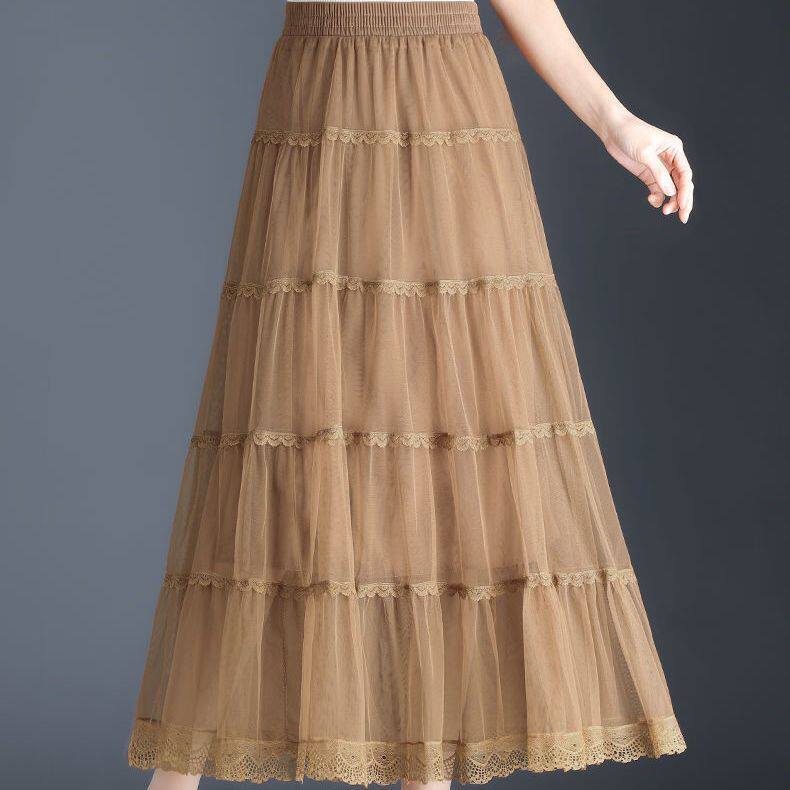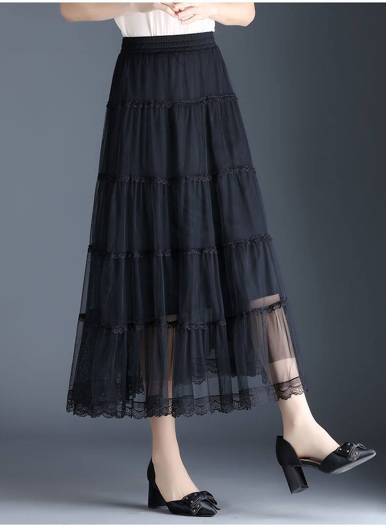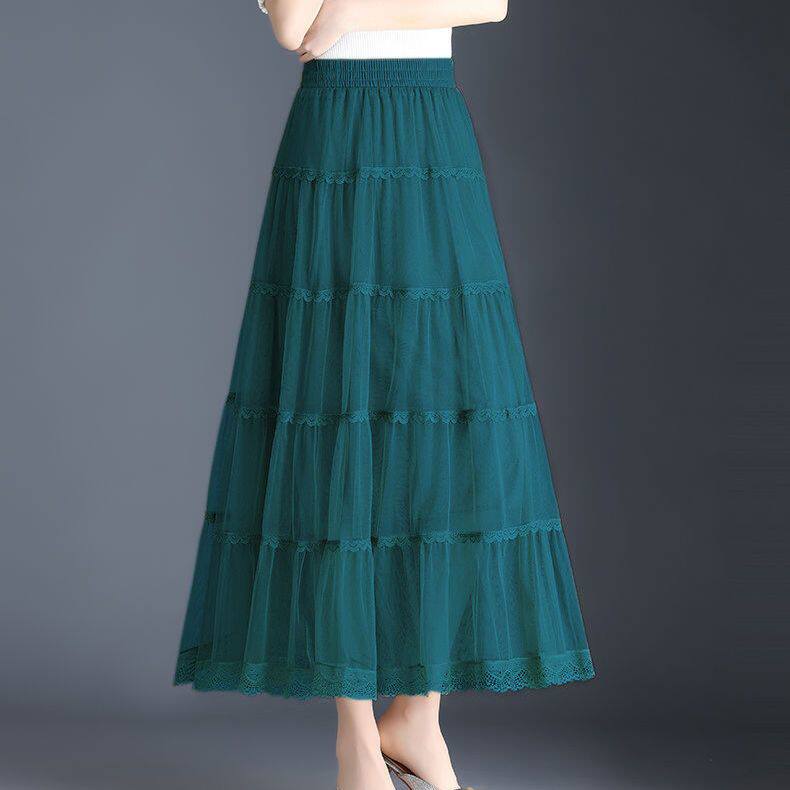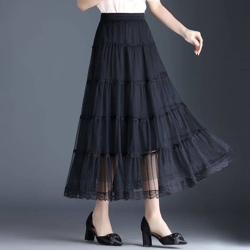 Высококлассная осенняя юбка в складку, кружевная длинная юбка, комплект, кружевное платье, А-силуэт, 3 предмета