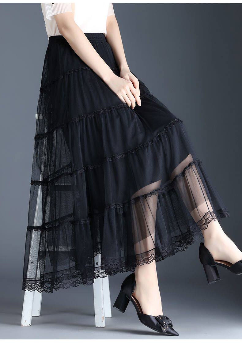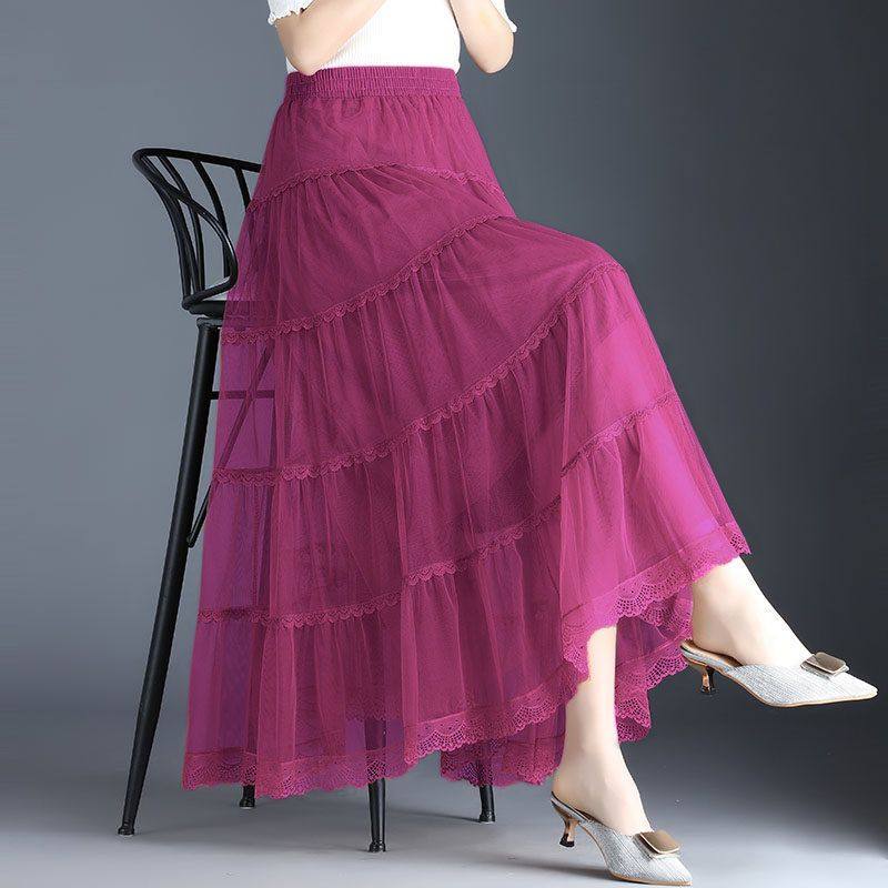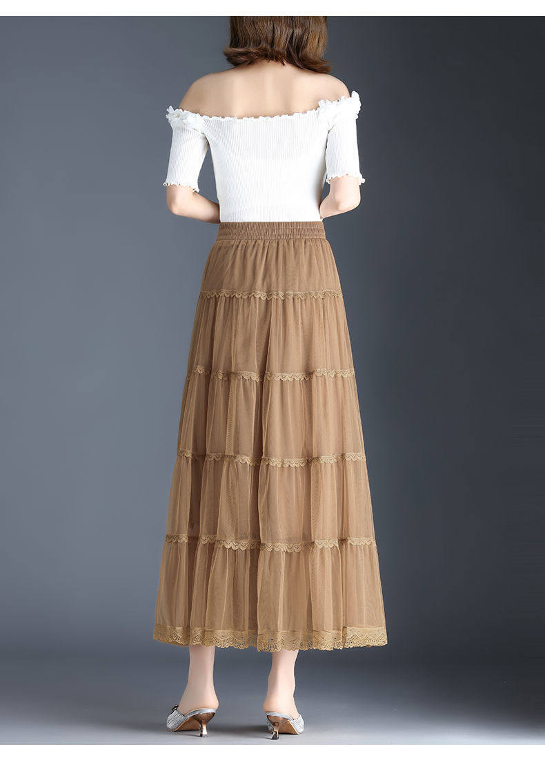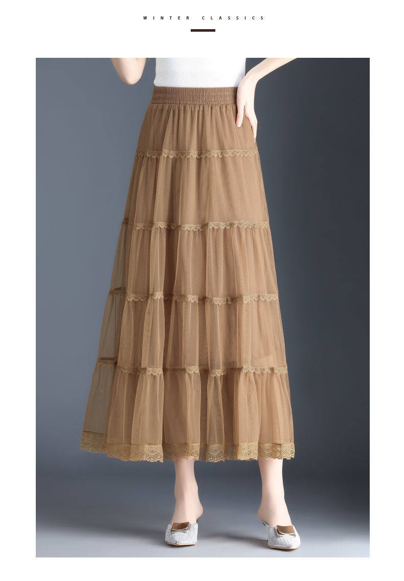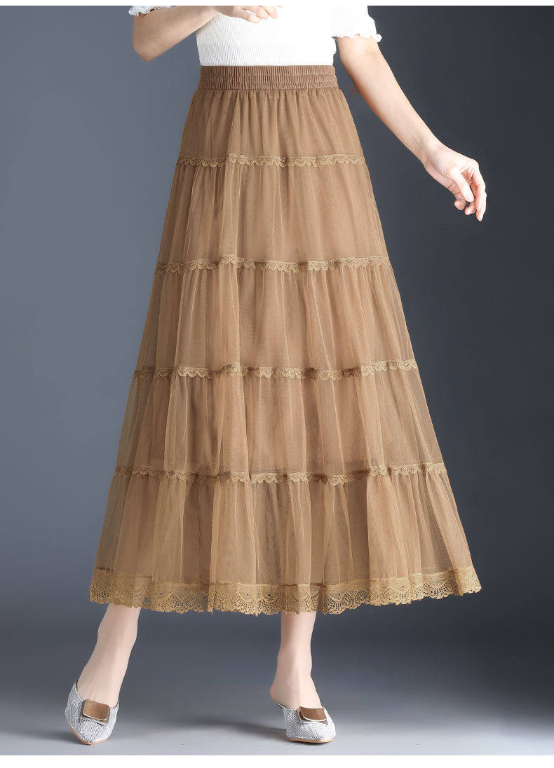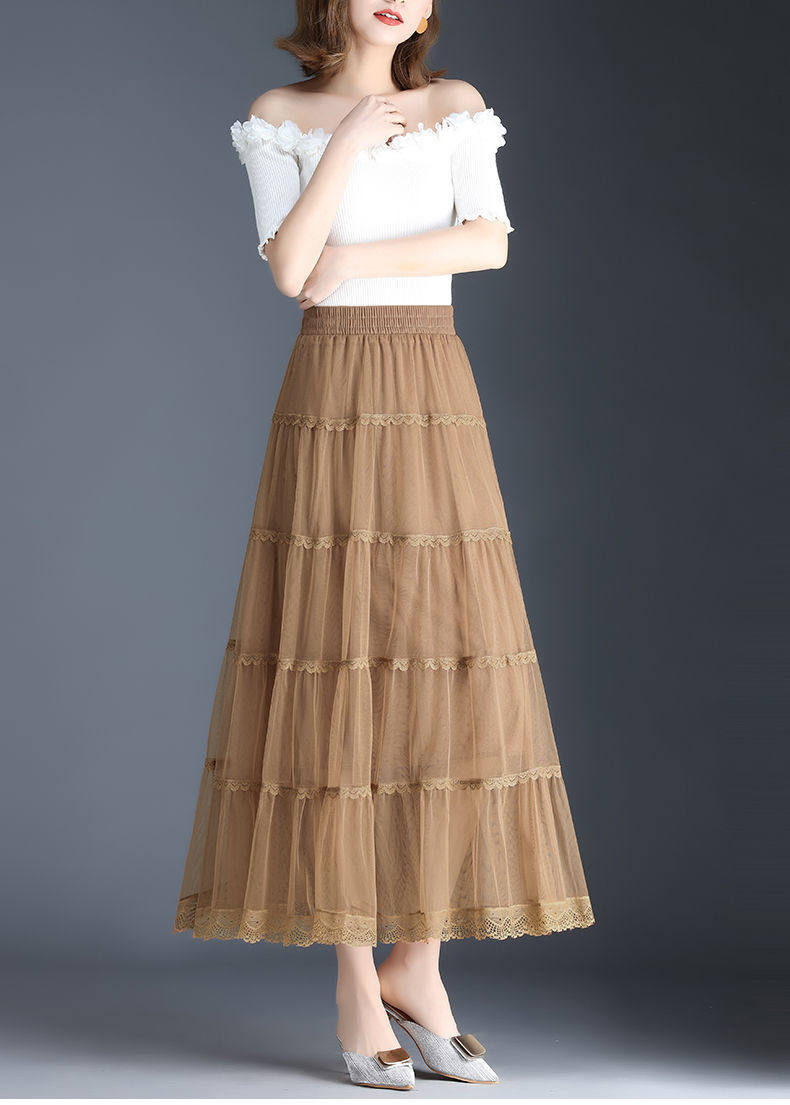 Высококлассная осенняя юбка в складку, кружевная длинная юбка, комплект, кружевное платье, А-силуэт, 3 предмета