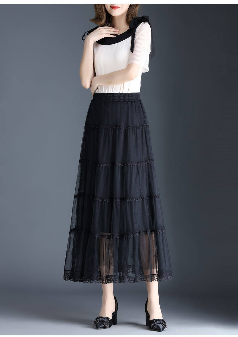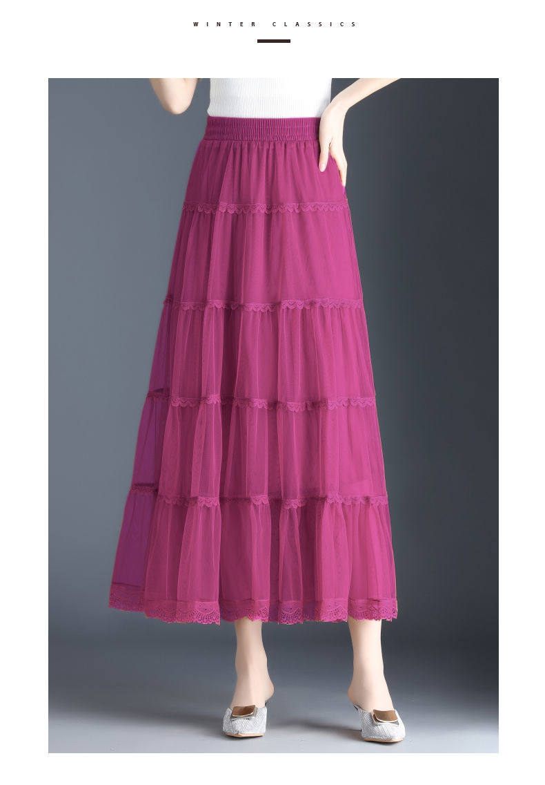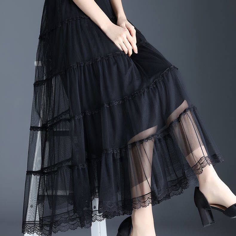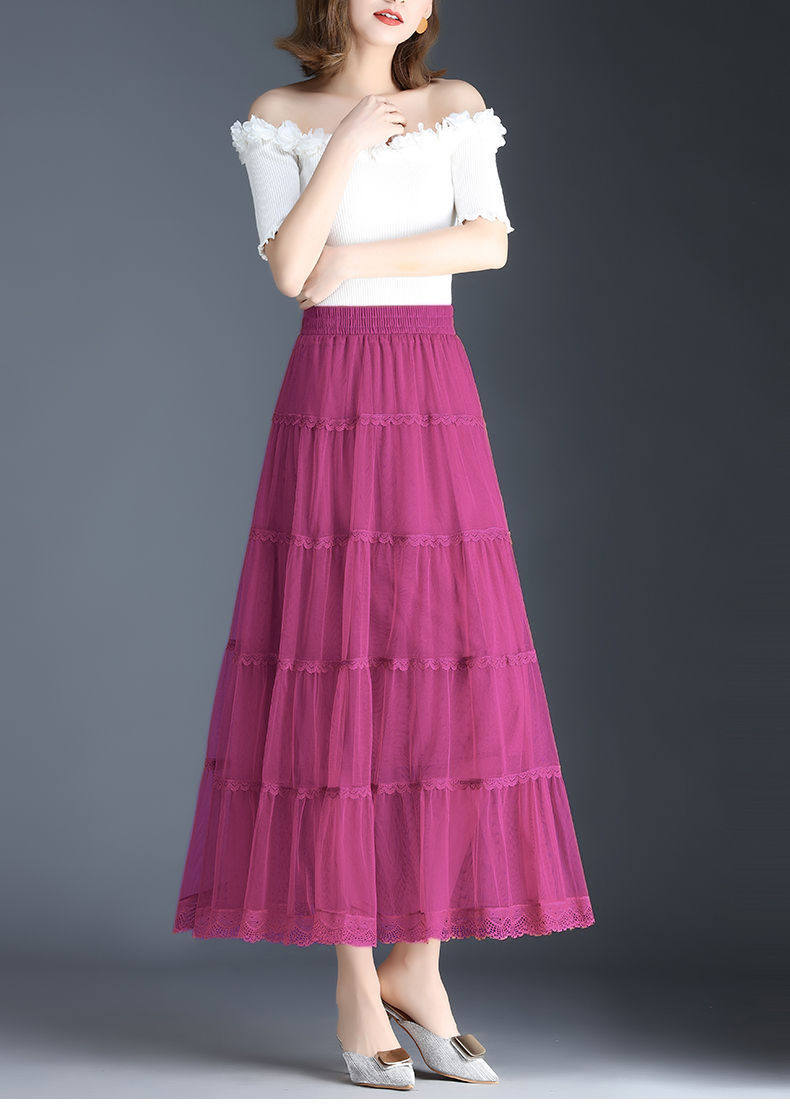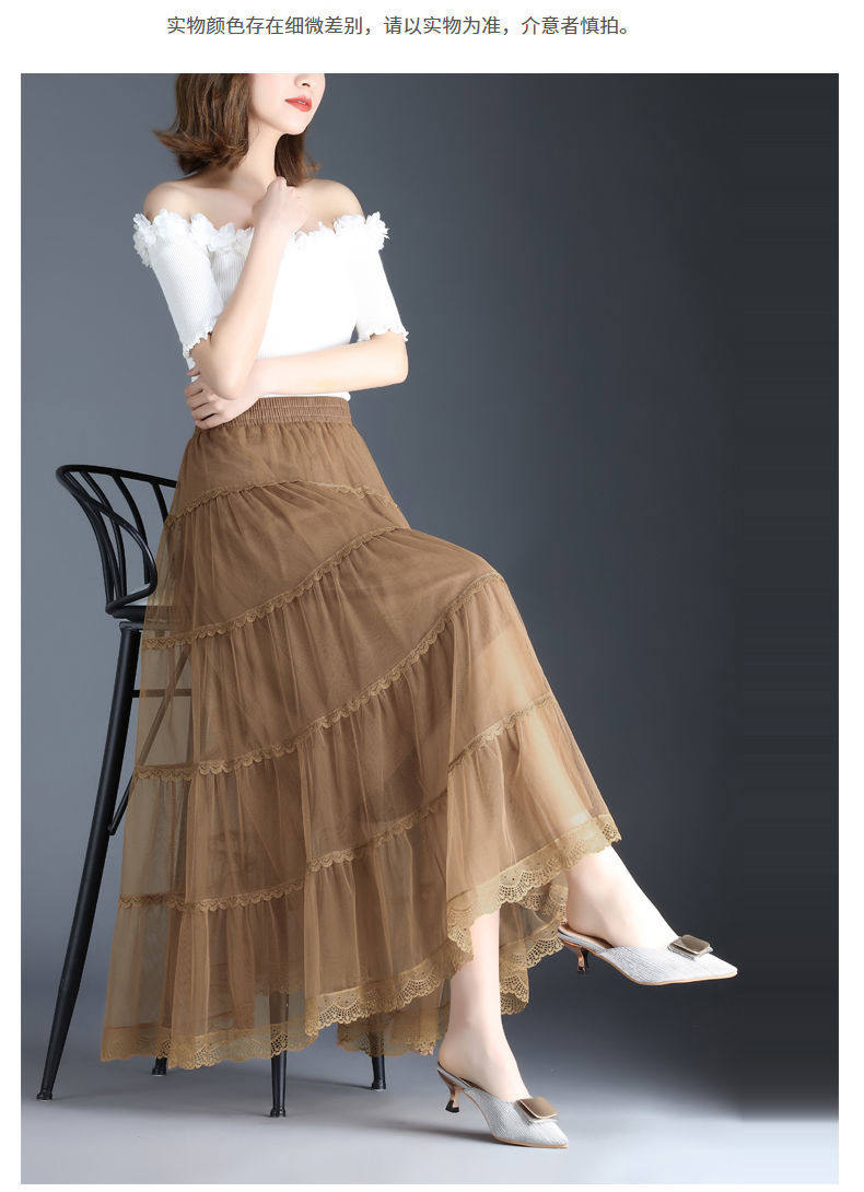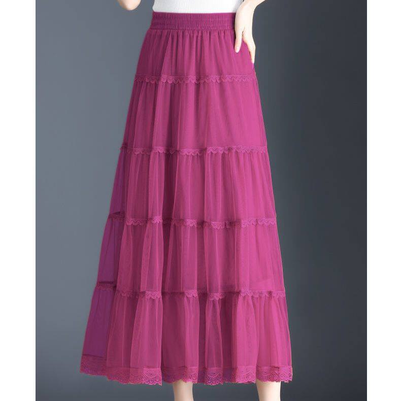 Высококлассная осенняя юбка в складку, кружевная длинная юбка, комплект, кружевное платье, А-силуэт, 3 предмета