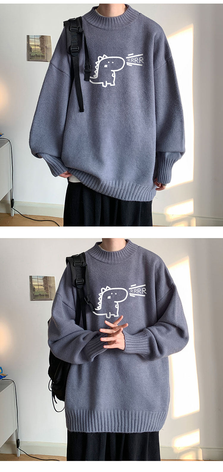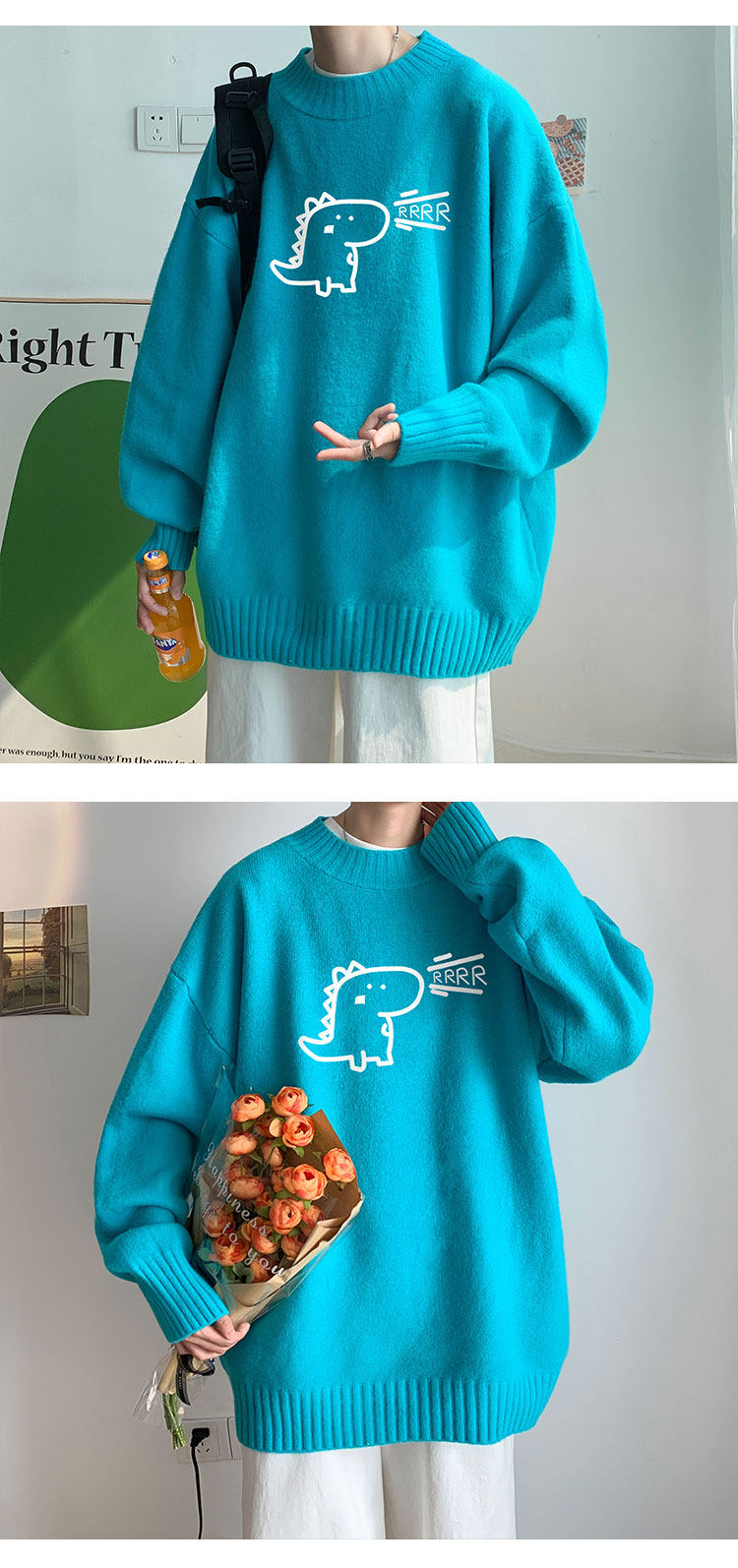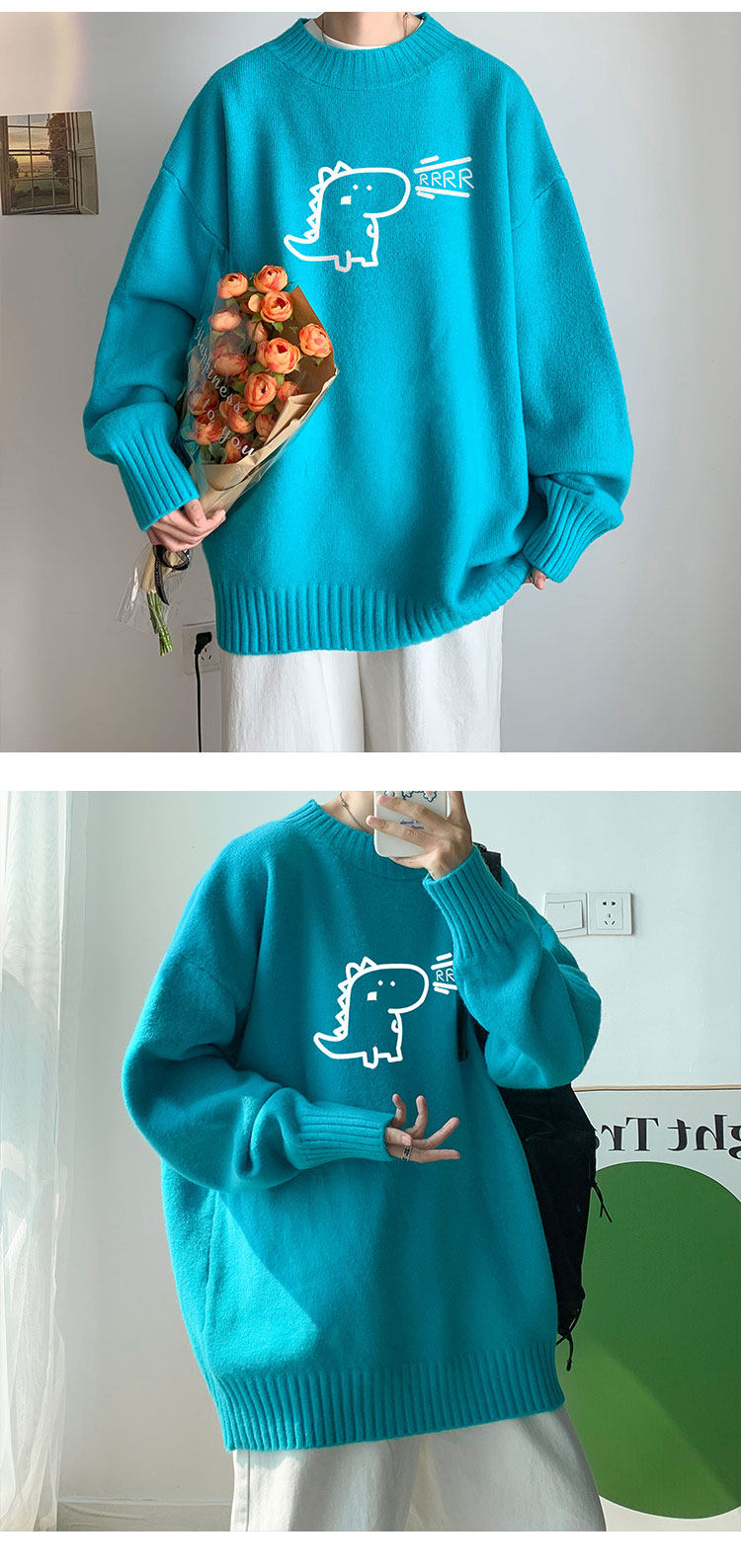 Милый утепленный удерживающий тепло трендовый шерстяной свитер с круглым воротником, высокий воротник, оверсайз