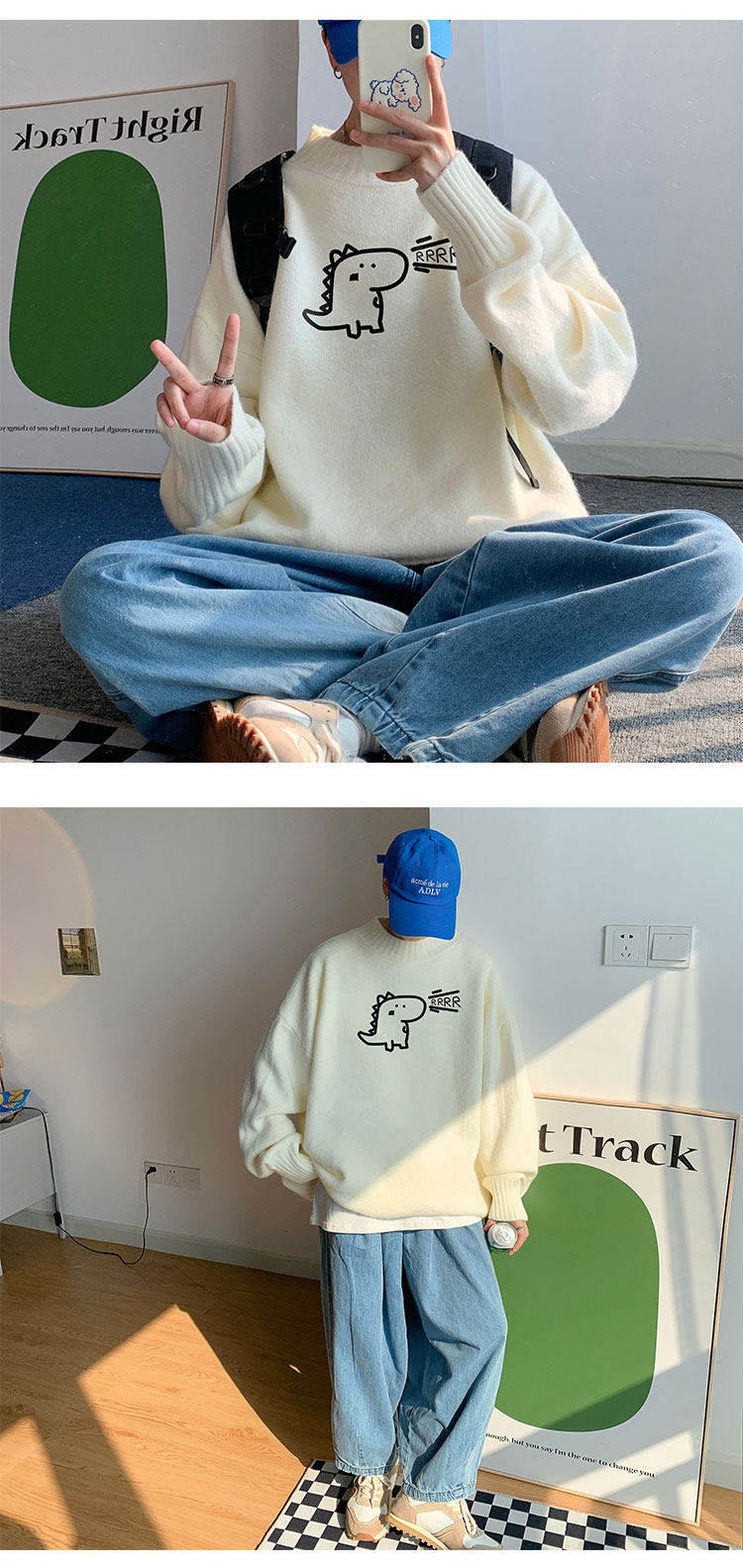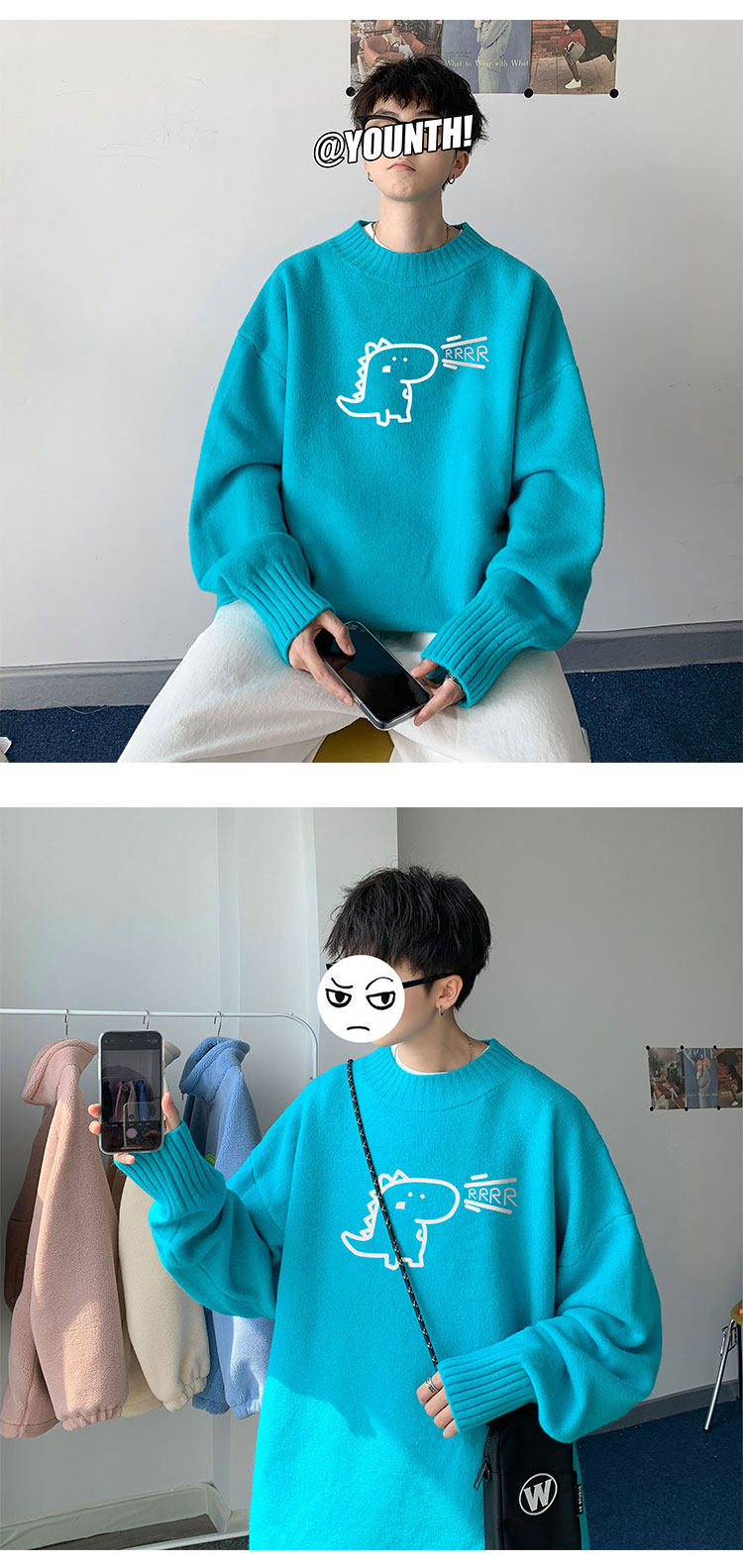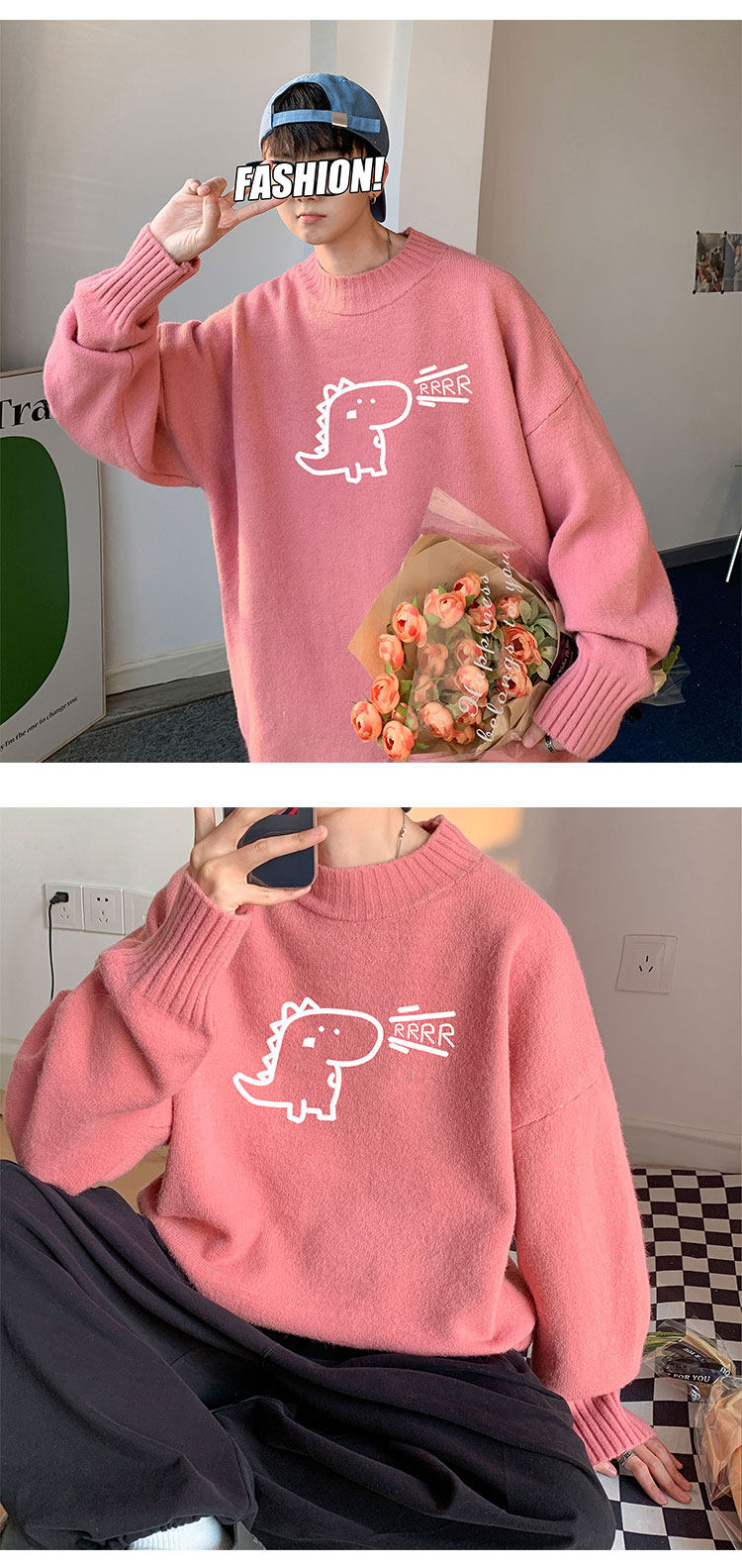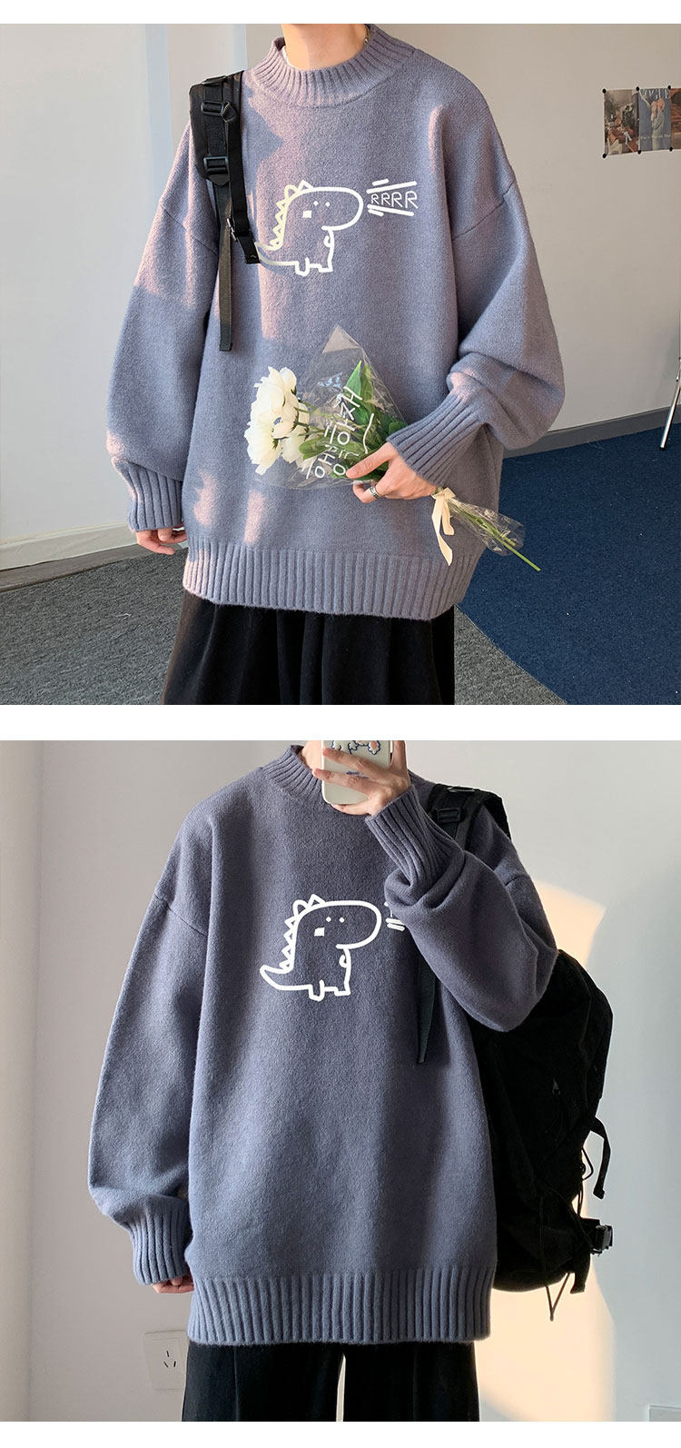 Милый утепленный удерживающий тепло трендовый шерстяной свитер с круглым воротником, высокий воротник, оверсайз