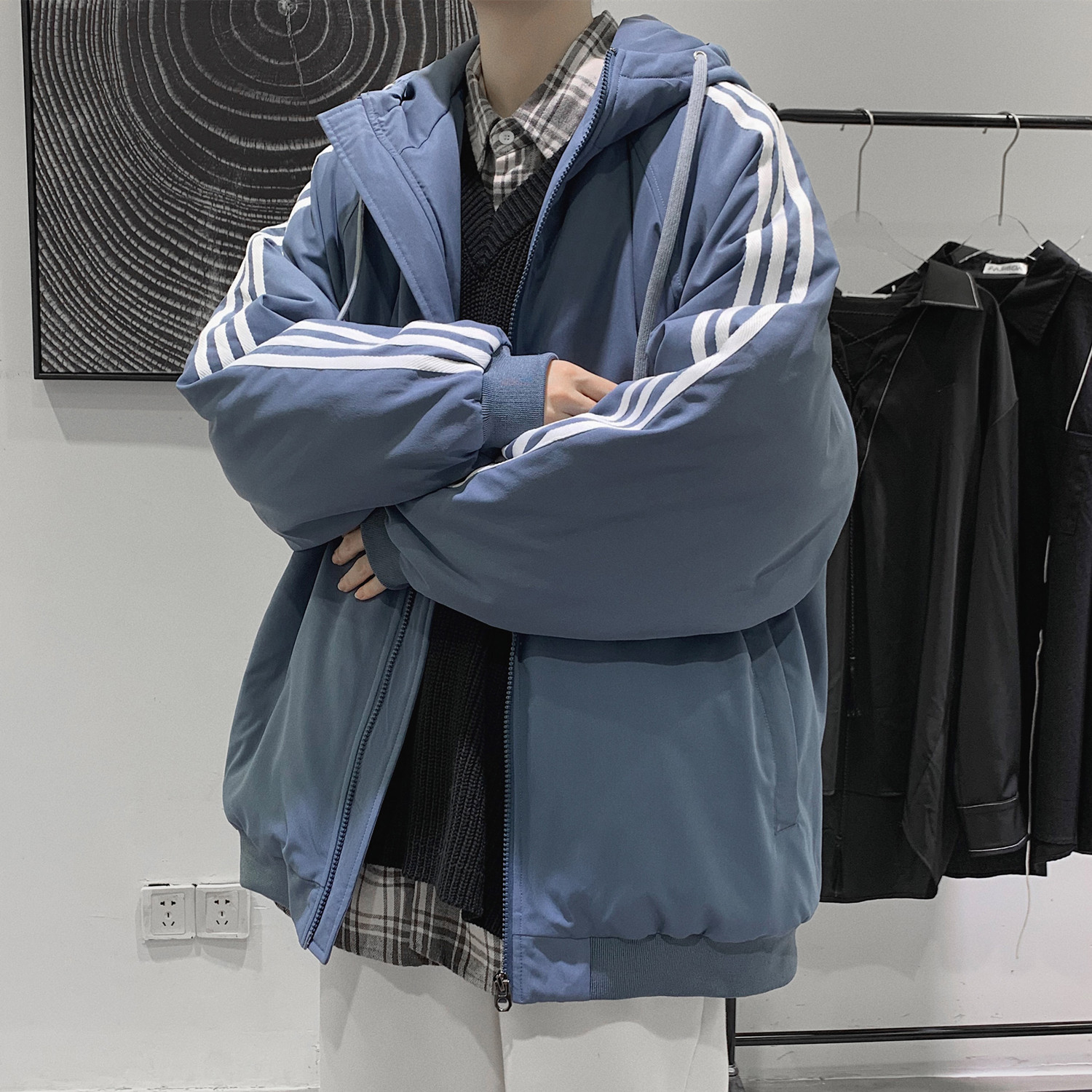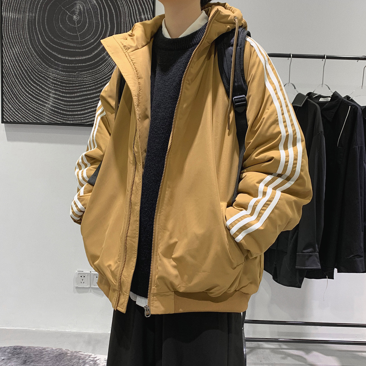 Спортивный демисезонный утепленный пуховик с капюшоном, куртка для отдыха, комплект, оверсайз