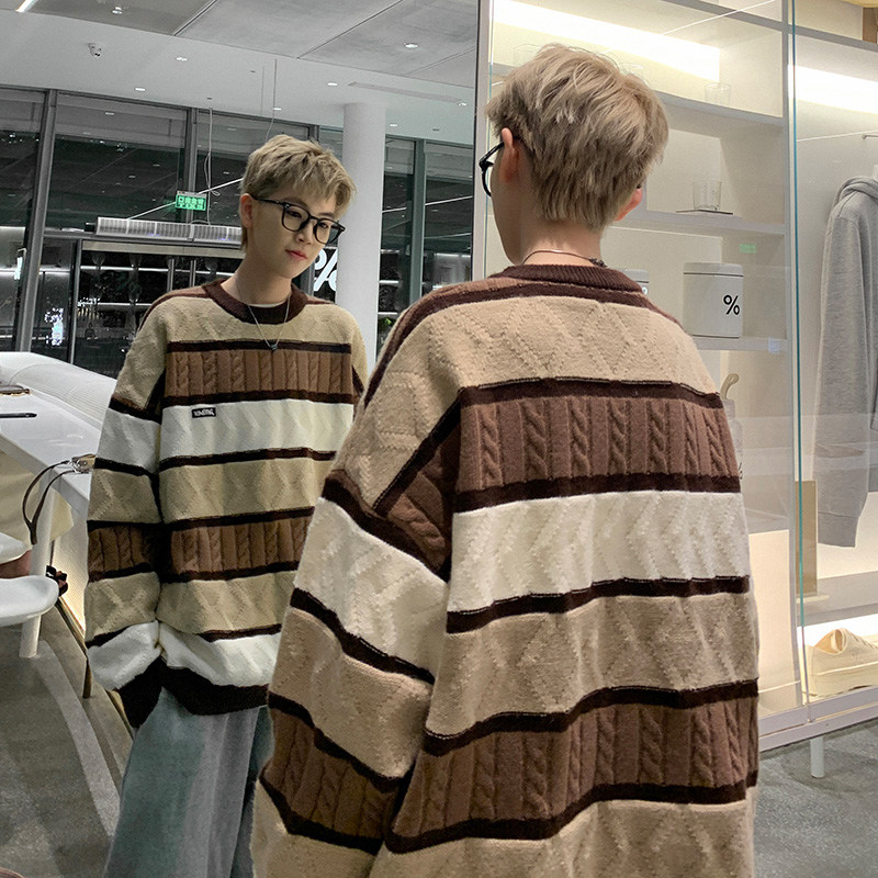Демисезонный ретро свитер с круглым воротником, трикотажная куртка, в американском стиле, оверсайз
