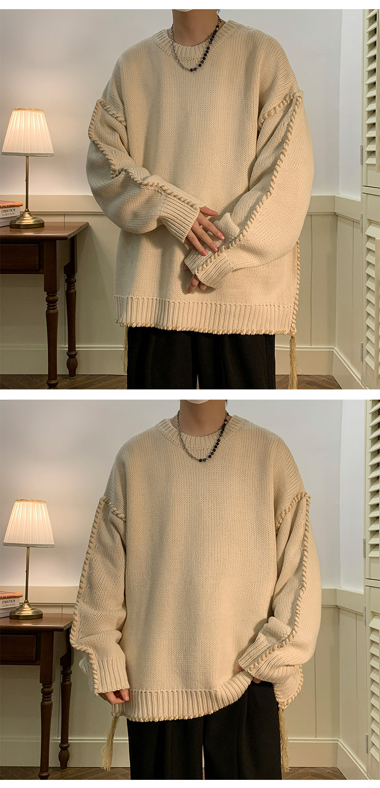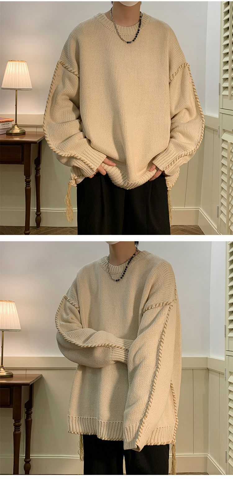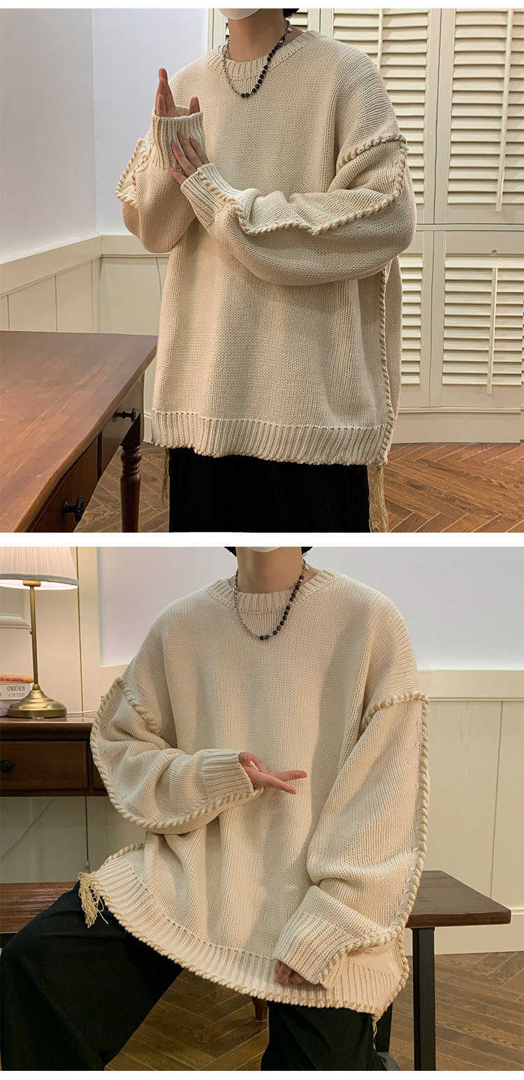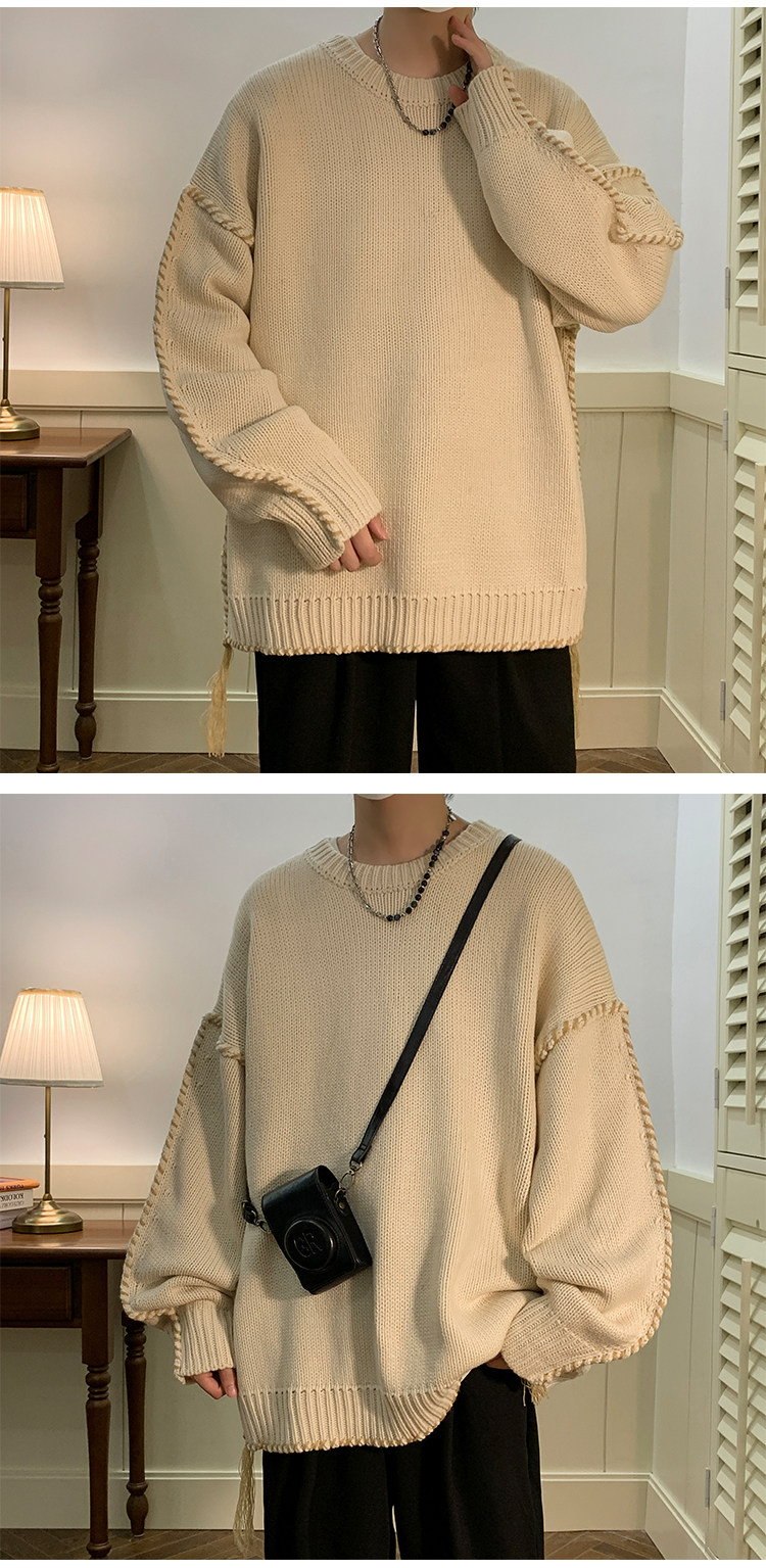 Ретро демисезонный дизайнерский трикотажный шерстяной свитер с круглым воротником, в американском стиле, тренд сезона, увеличенная толщина, свободный крой