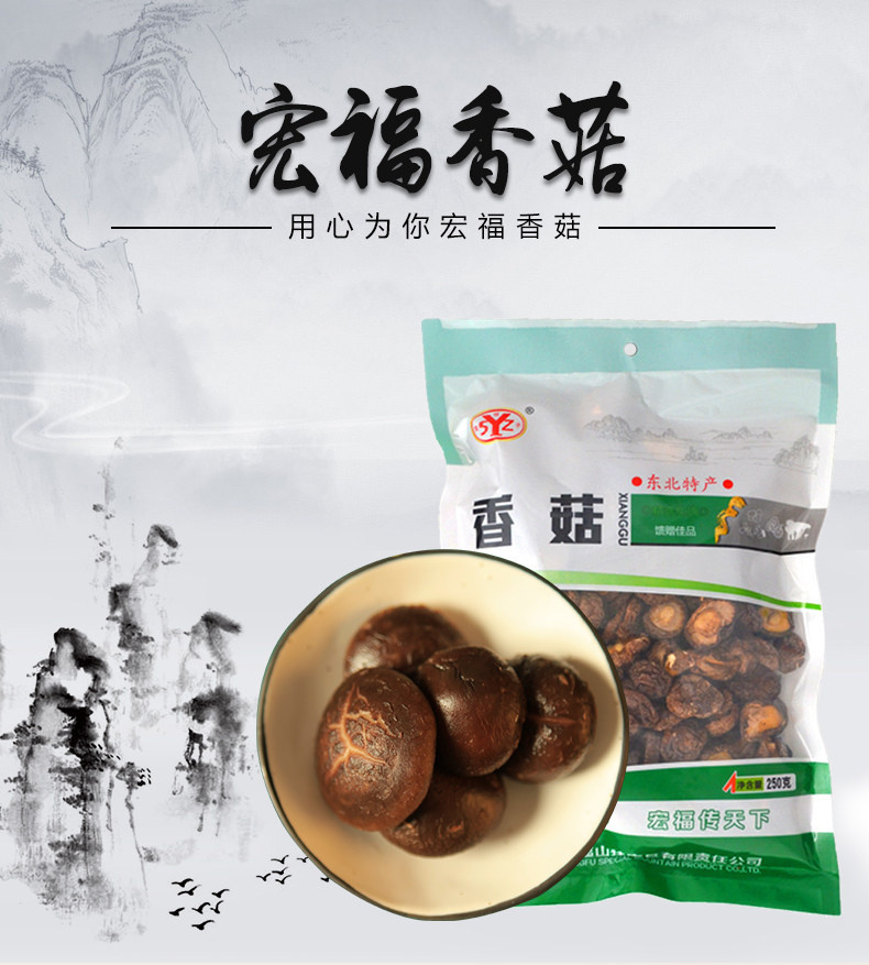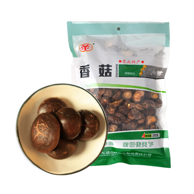 Два -тадлоновая сумка, установленные на северо -востоке специальных грибов шиитаке, небольшие грибы, сухой товары, бесплатный корень, бесплатный выбор 250 г желтого крикета куриные ингредиенты