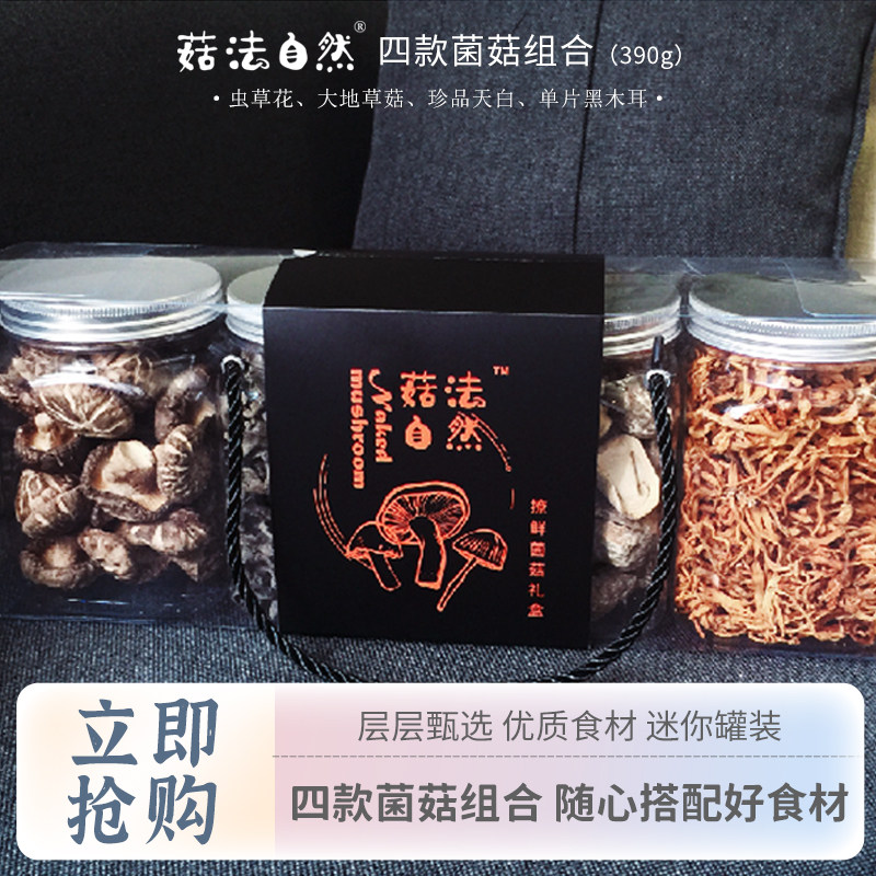 [Четыре грибных комбинации с 390 г] Мини -подарочная коробка содержит цветок cordyceps, травяные грибы, сокровища черного дерева.