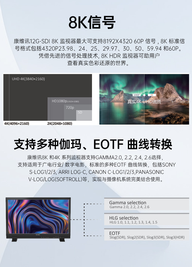 Konvision KUM-3120Q 32-дюймовый 12G-SDI8K Монитор поддерживает предварительный просмотр HDR