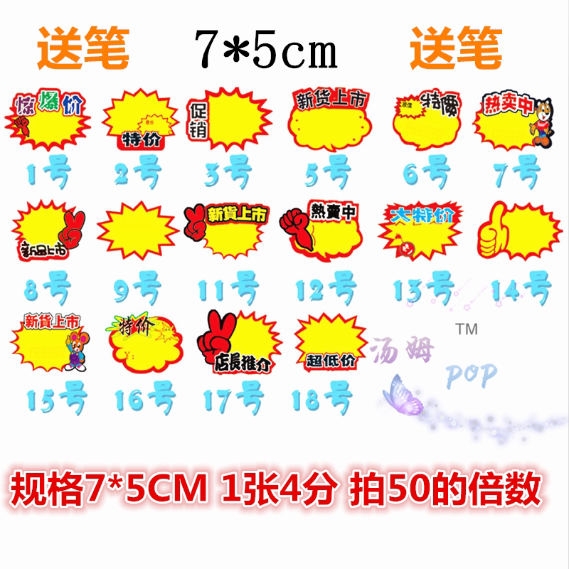 Yiwu Chong 7*5 маленькая поп -карта реклама наклейка ценовой марки