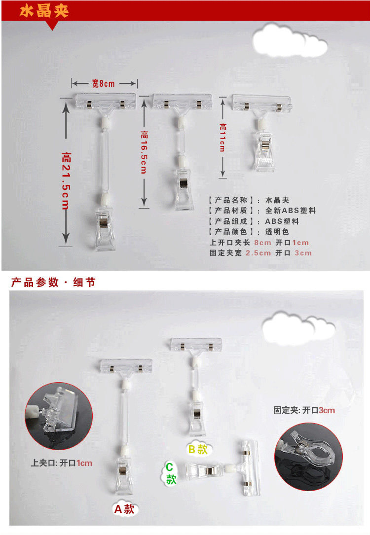 POP прозрачный хрустальный клип рекламный клип Super -label папка с двойным пластиковым дисплеем.