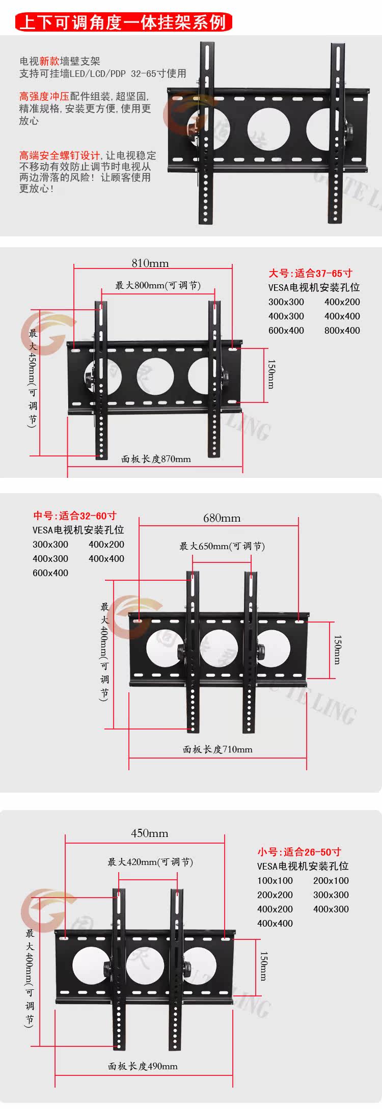 固特灵 ЖК-телевизионное телевидение подвесное рама, установленная на стенах, xiaomi letv 26-65-дюймовый общий назначенный телевизор