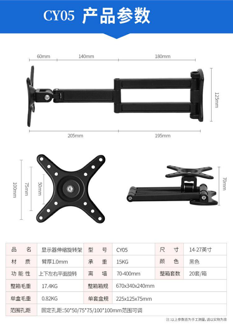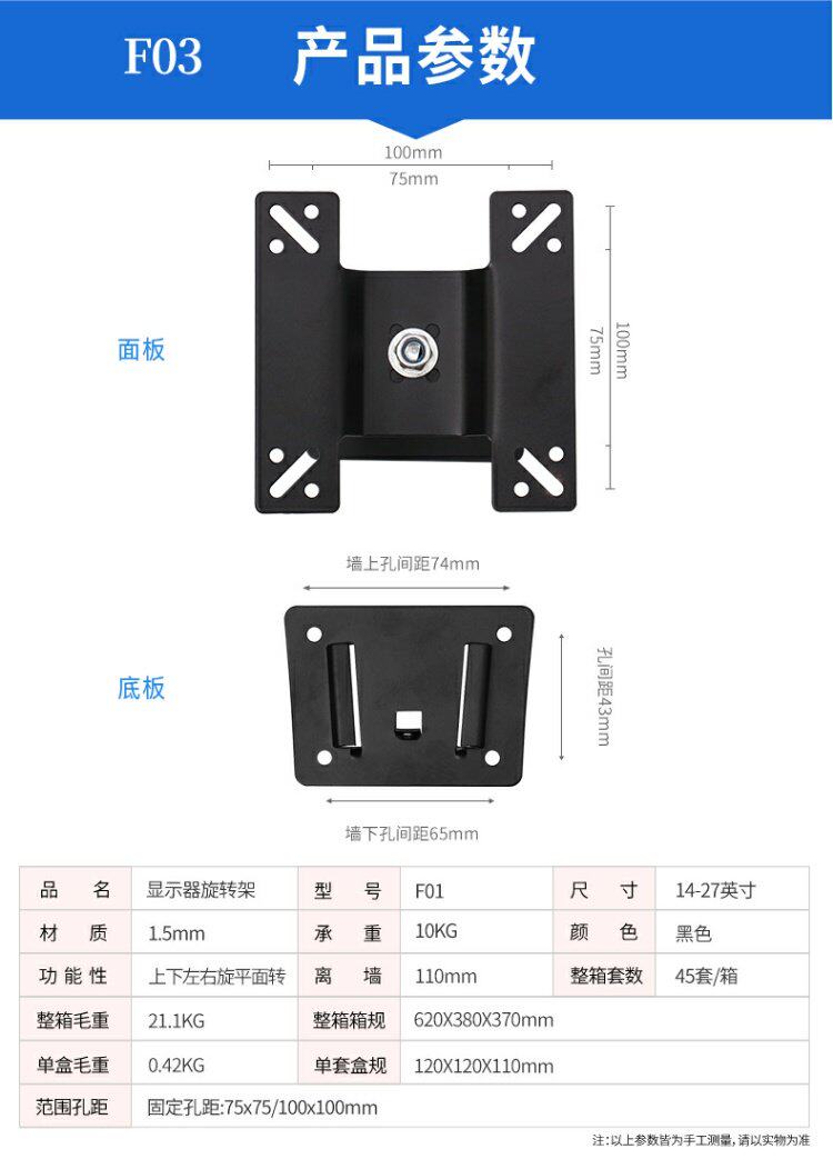 | Цвет: | Пластиковая стойка с родом вала-10 см от стены, Пластиковый горизонтальный вертикальный экран-11 см от стены., Поднимите металлический вал-рот-стойка 10 см от стены, Поднимите металлический вал горизонтальный вертикальный экран-11 см от стены, Небольшая заглушка-1CM вдали от стены (пакет PP), Время наклонить 3 см от стены, Вращение с обоими руками-4-33 см от стены, Трехручный телескопический вращение-4-41 см. Вдали от стены, Поднимите трехручную горизонтальный вертикальный экран-6-40 см от стены, Поднимите трехручную горизонтальный вертикальный экран расширение-6-40 см от стены, Стенка с напользом один в одном из них 1,8 см, Показать складную базу 17-24 дюйма |
