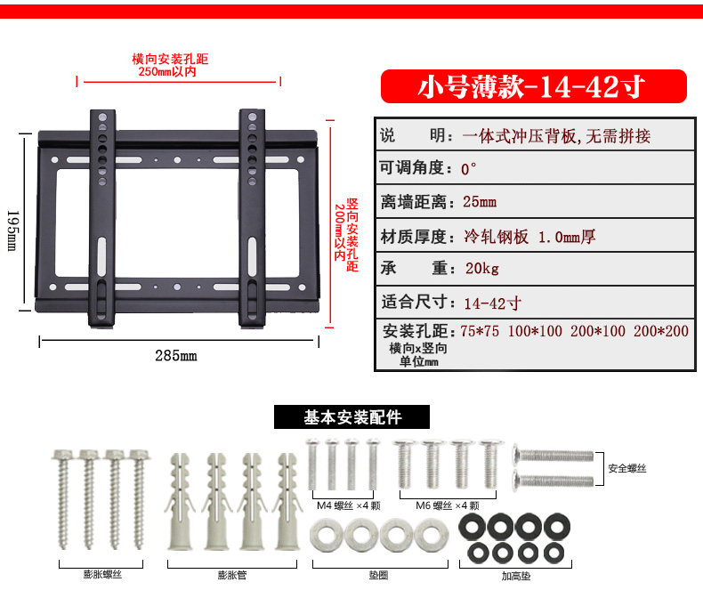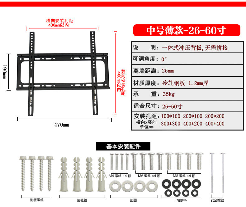 | Цвет: | Маленькая труба-17-43 дюйма Material 1.0, Small-17-43-Material 1.2 (рекомендуется), Средний размер - 32-65 дюймов - материал 1.2, Средний размер - 32-65 дюймов - материал 1,5 (рекомендуется), Большой размер - 40-80 -дюймовый материал 1,5 (рекомендуется), Средний односторонний регулируемый - 32-60 дюймов - материал 1.5, Большая усиленная модель - рекомендуется 42-85 дюйма толщиной 1,8, Маленький двусторонний регулируемый 17-42 дюйма, Среднее подкрепление двустороннее регулируемое-32-60 дюймов, Большой усиленный двусторонний регулируемый-40-85 дюймов, Маленький ЖК-дисплей, 32 дюймов |