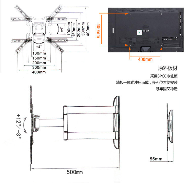 Подкрепление3 руки-32-55 дюймов