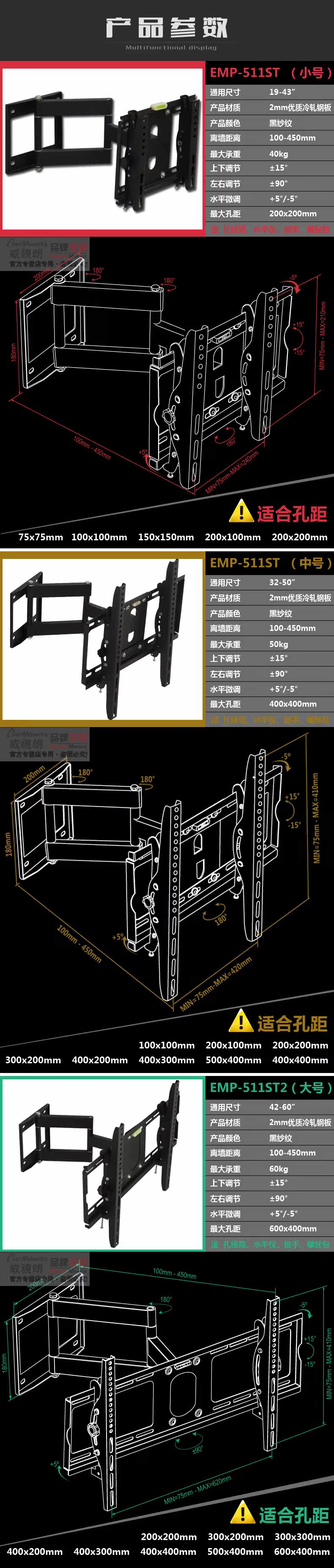 Цвет: Советы (19 '' -43 ''), Средняя (32-50 ''), Большой (42-60 '')