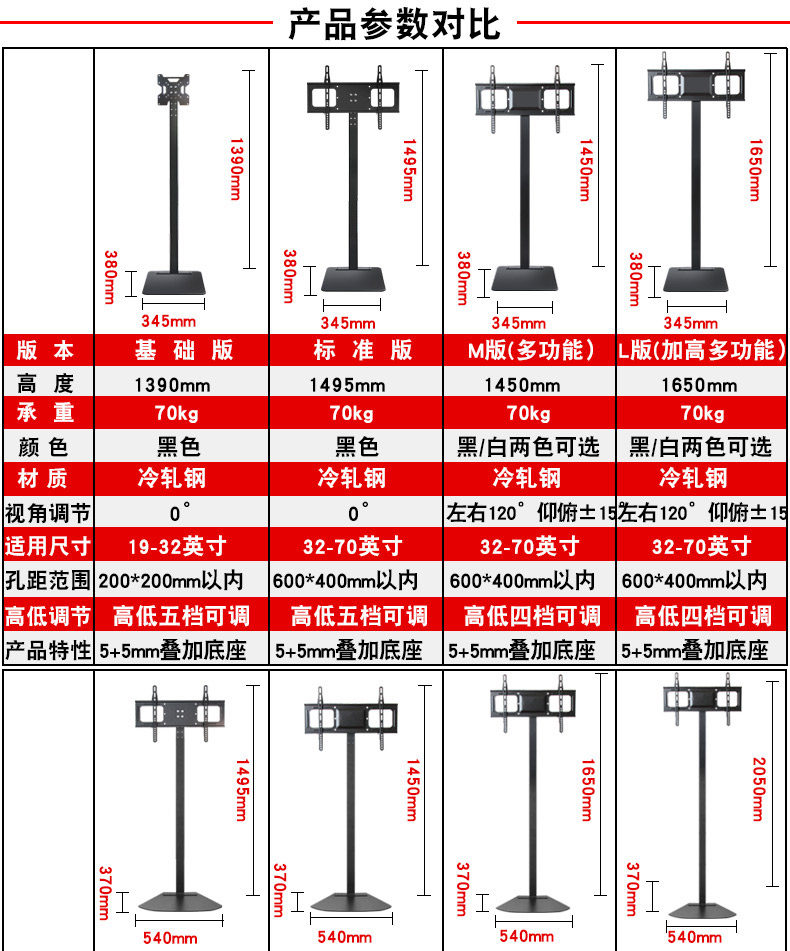 魔典 Напольная подставка для телевизора, подвесная полка для монитора, скрытая полка без перфорации, 19 ~ 70 дюймов, универсальная